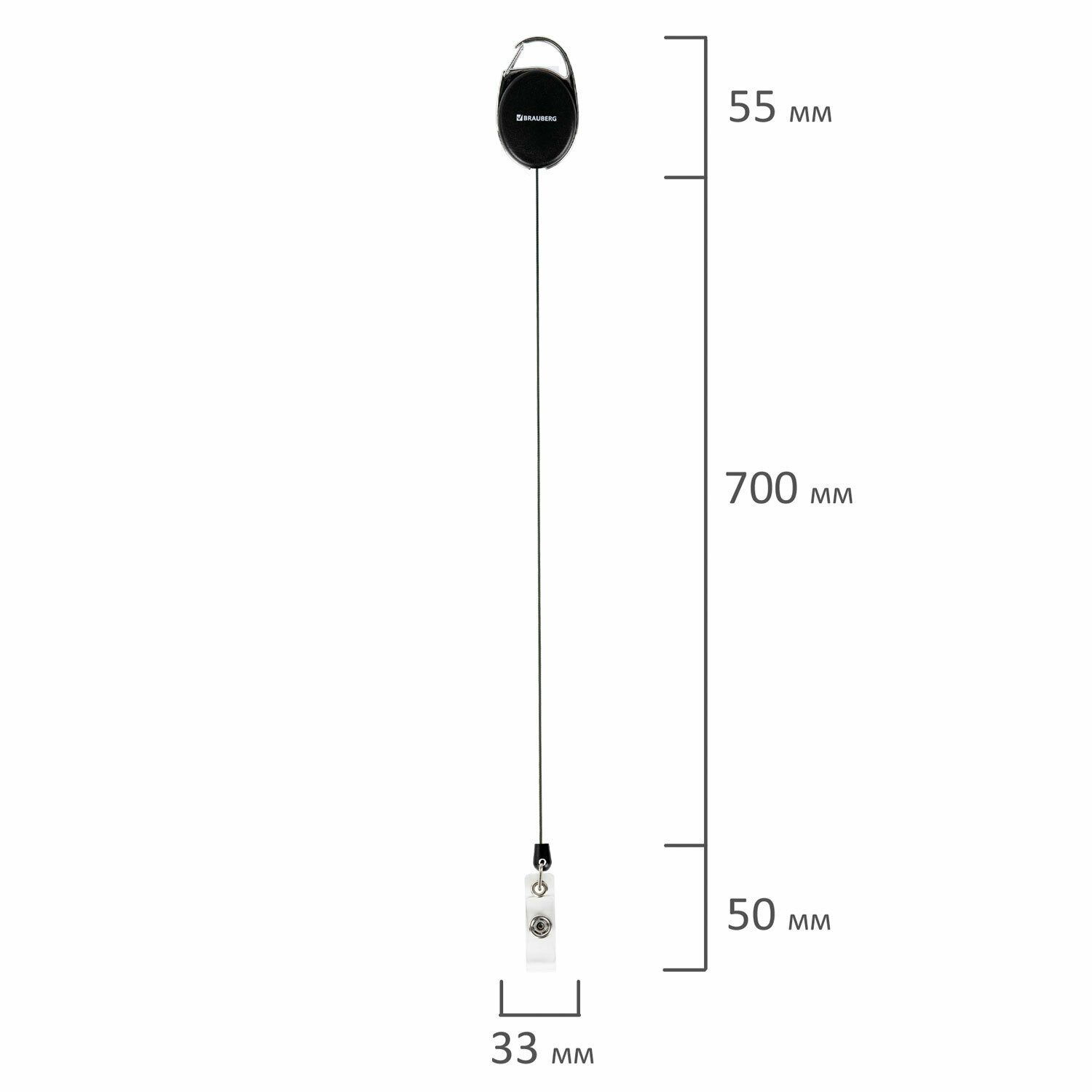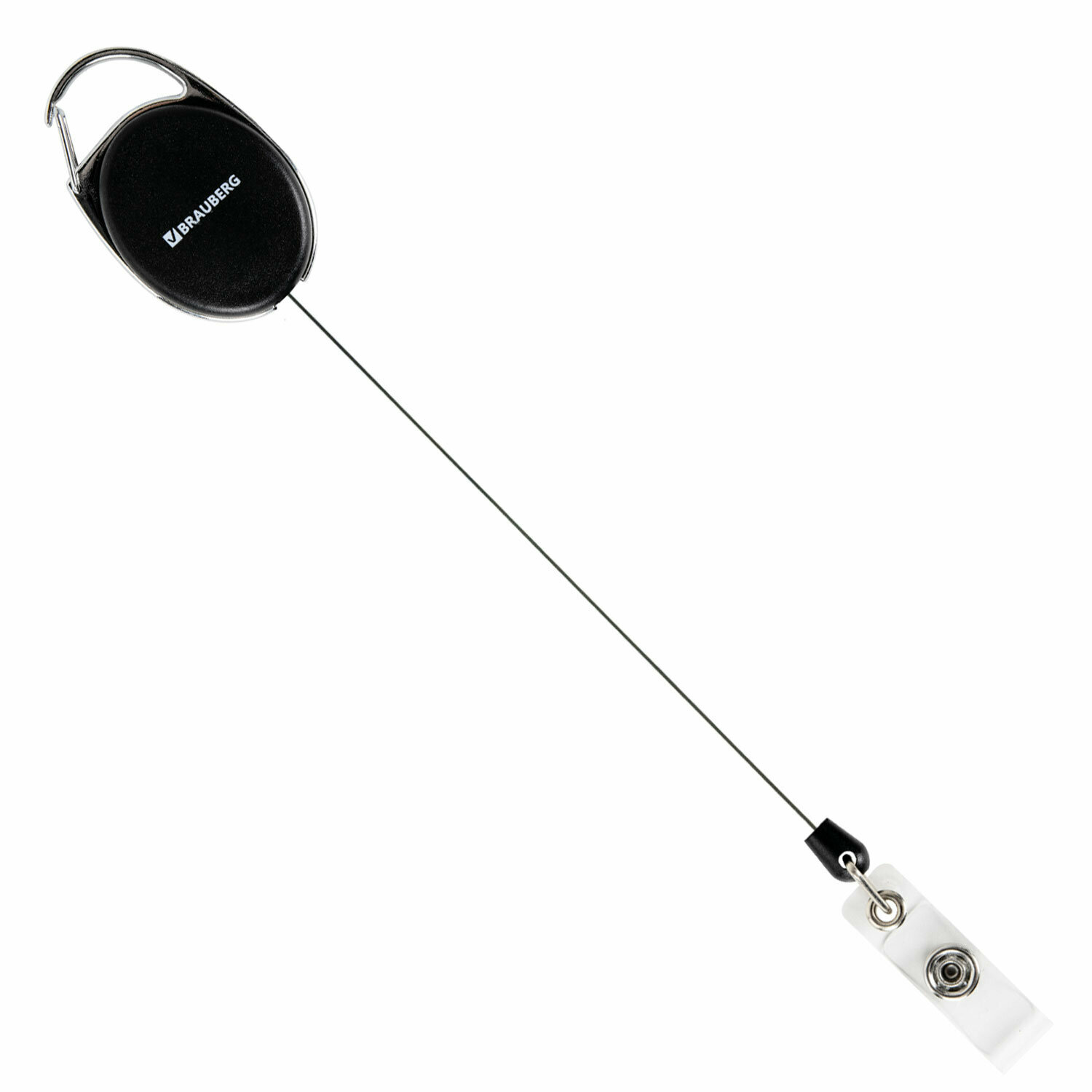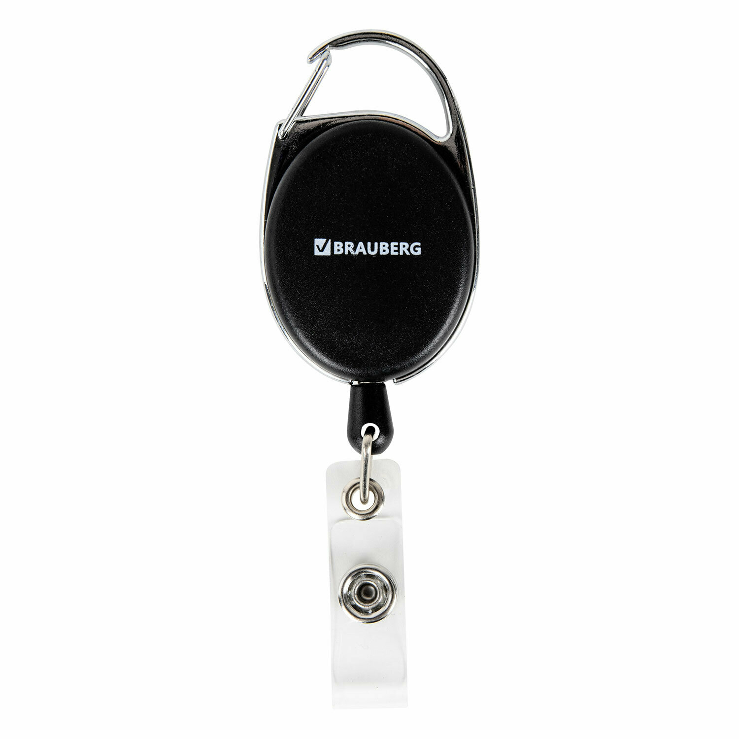 Держатель для бейджей с рулеткой, карабин для бейджика, пропуска, карт, ключей 70 см, петелька, черный, в блистере, BRAUBERG, 238237 интересное: