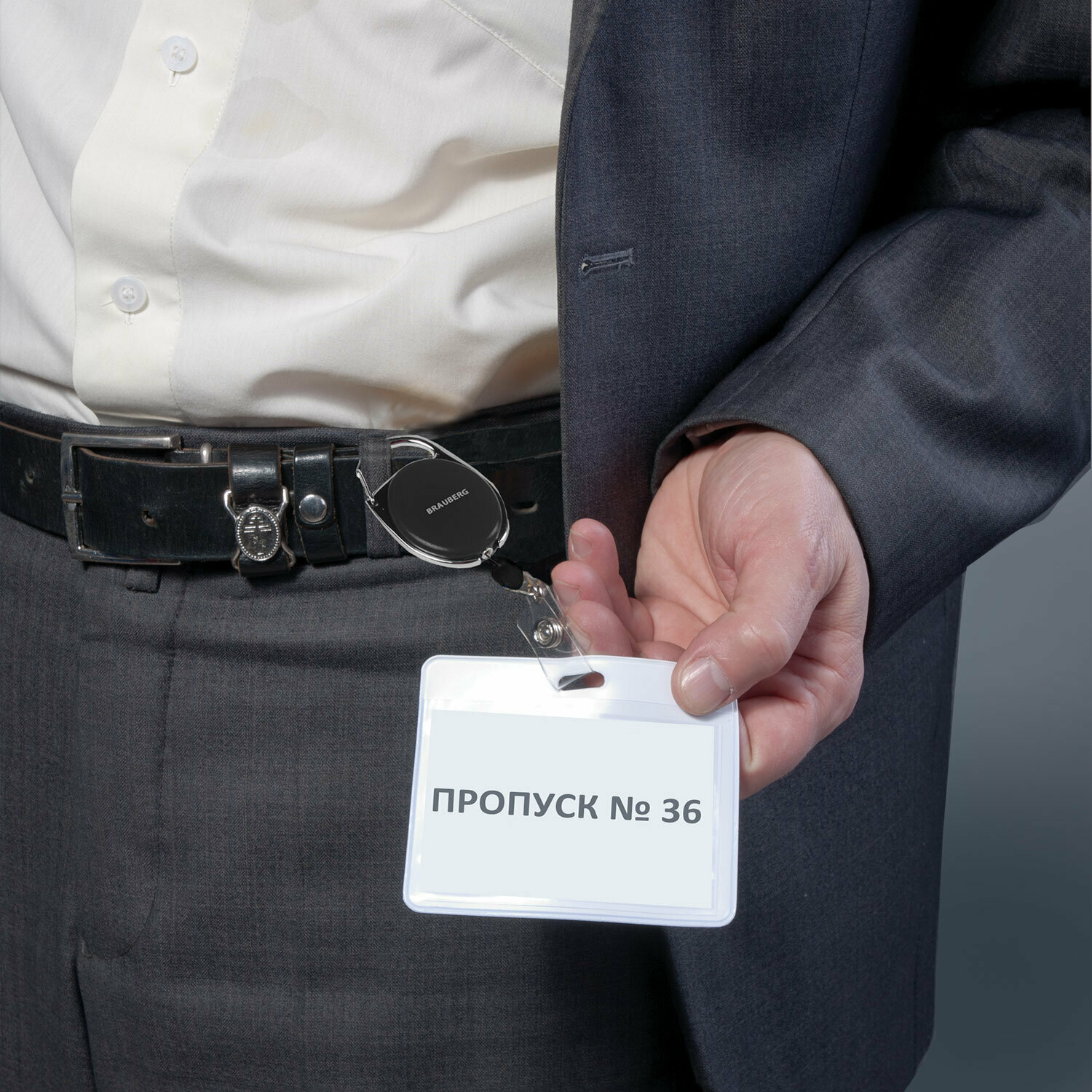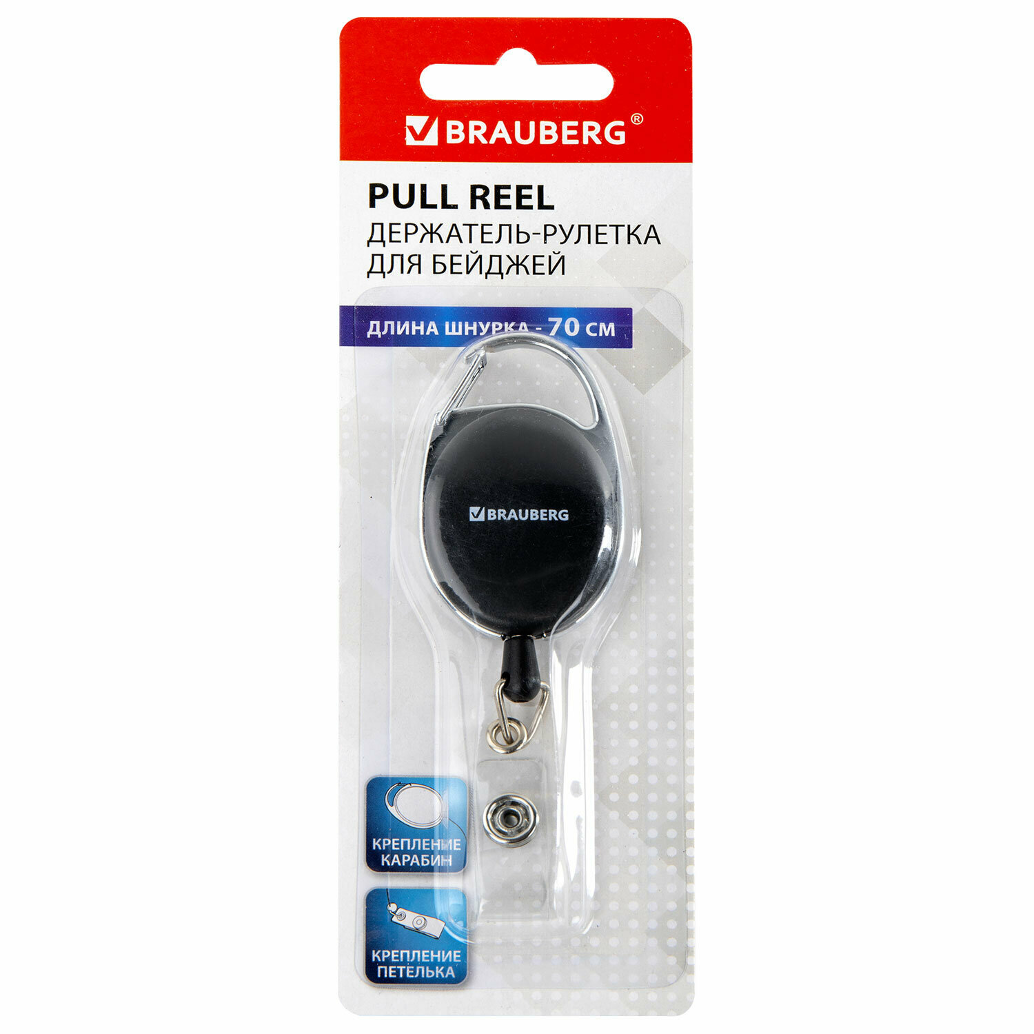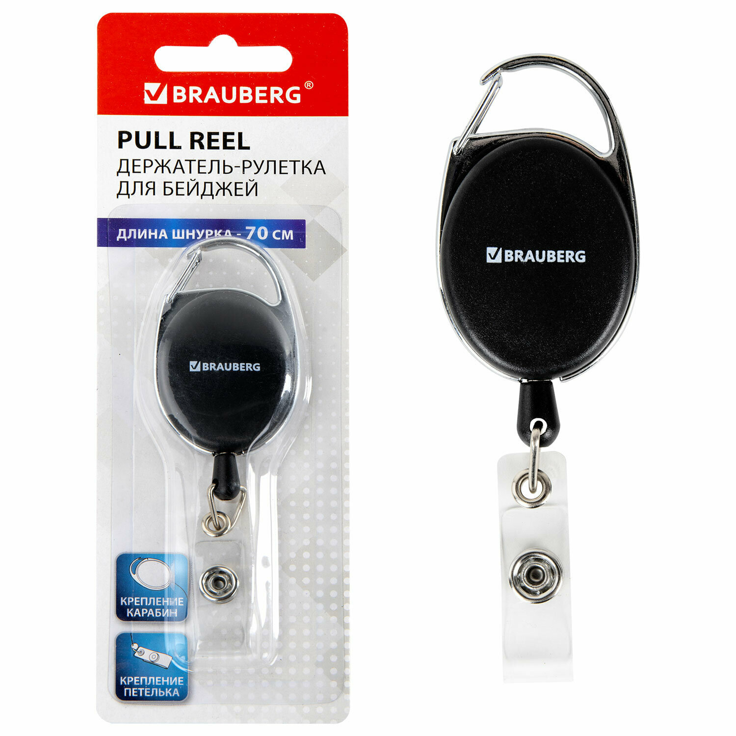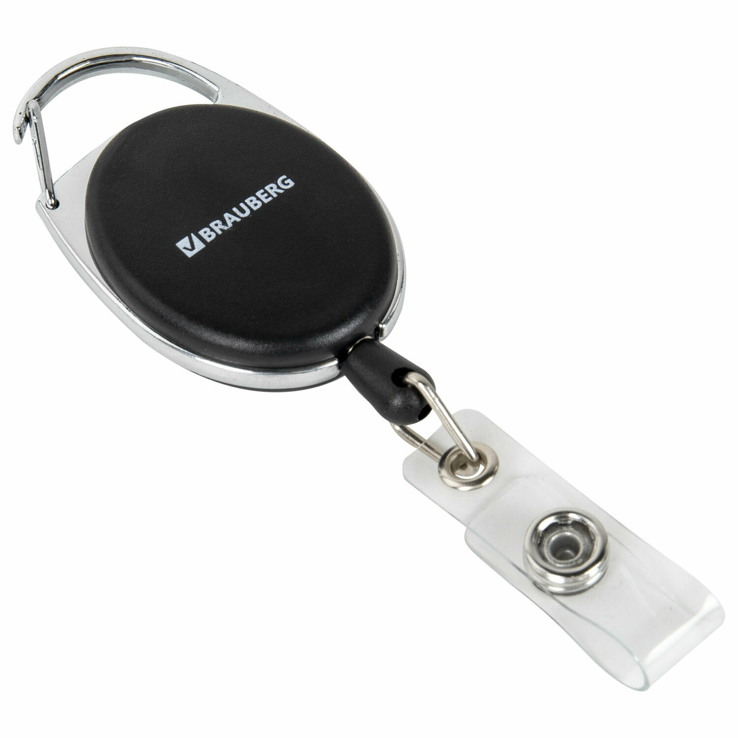 Держатель для бейджей с рулеткой, карабин для бейджика, пропуска, карт, ключей 70 см, петелька, черный, в блистере, BRAUBERG, 238237 интересное: