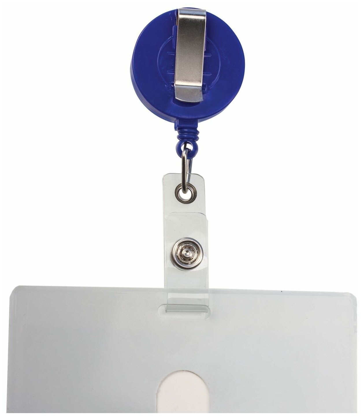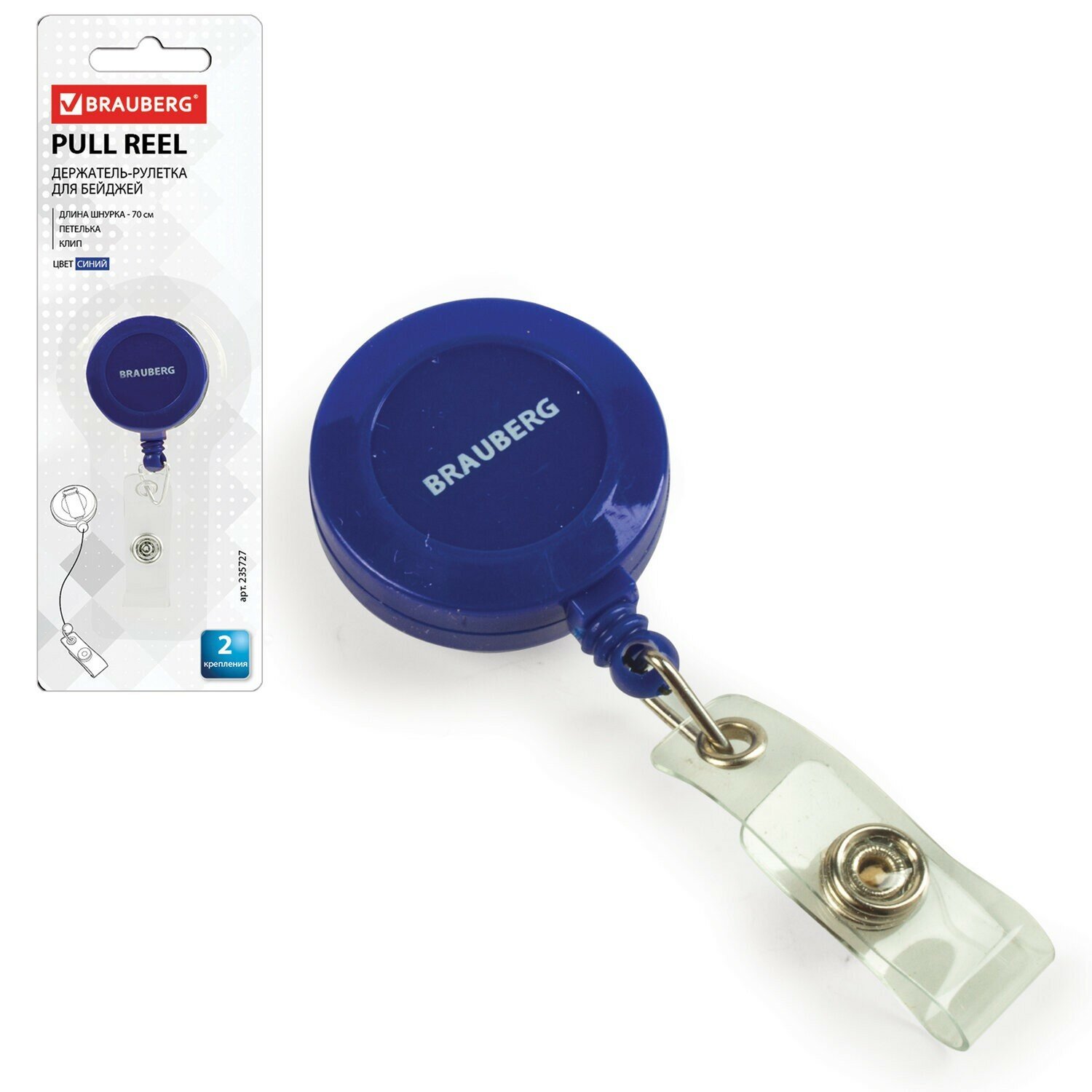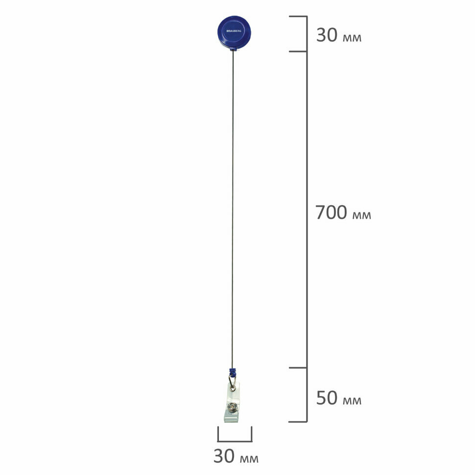 Держатель-рулетка для бейджей, 70 см, петелька, клип, синий, в блистере, BRAUBERG, 235727