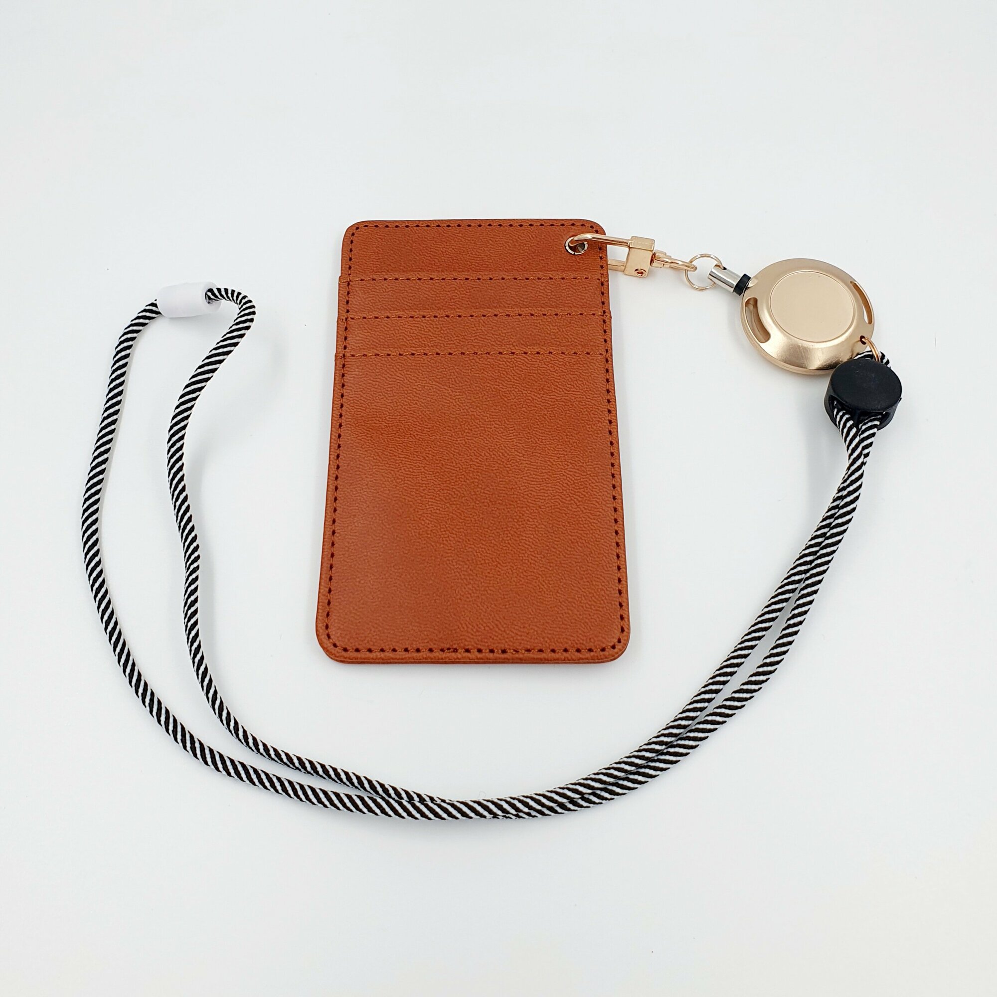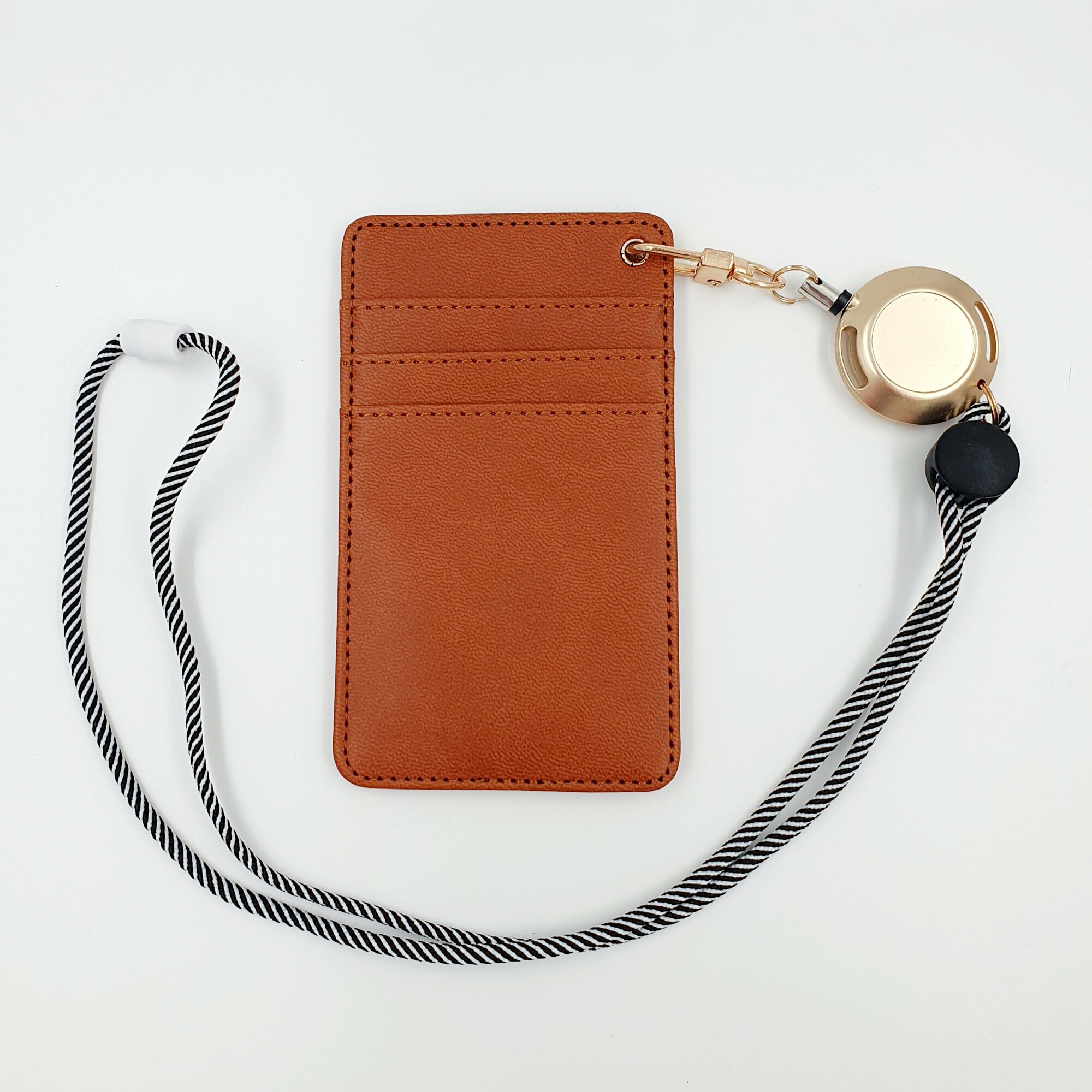Купить Картхолдер / бейдж для пропуска, карт и проездного с рулеткой и шнурком на шею коричневый