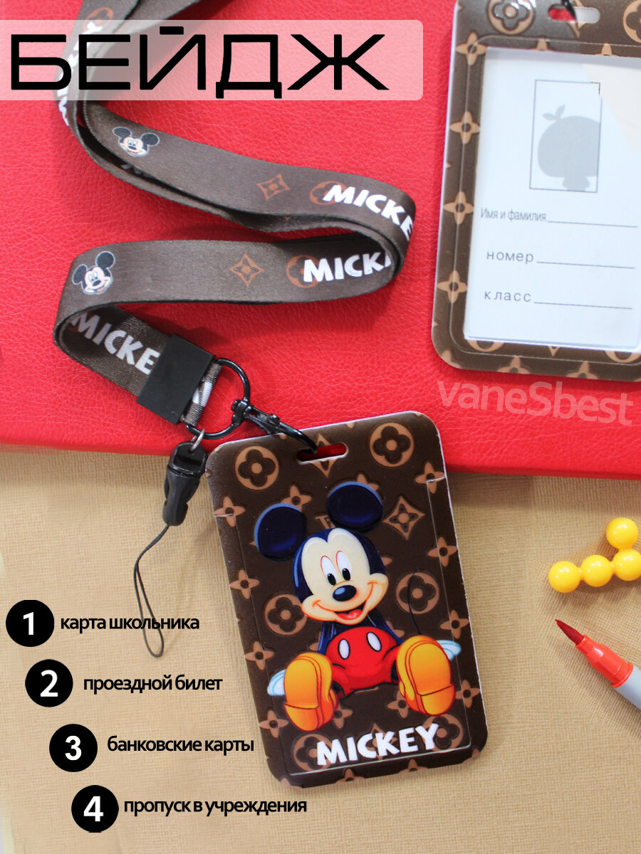 Держатель для бейджа/пропуска/карточки с лентой vaneSbest Mickey Mouse 2 / Микки Маус