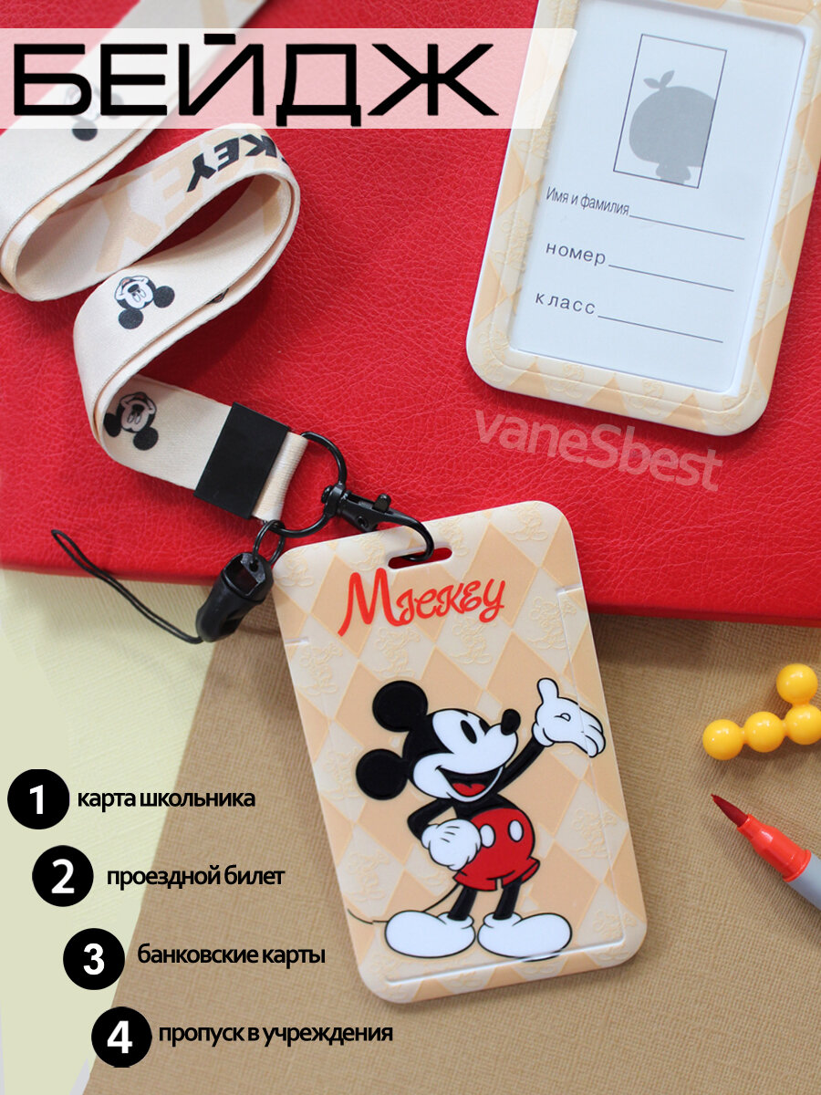 Держатель для бейджа/пропуска/карточки с лентой vaneSbest Mickey Mouse 2 / Микки Маус