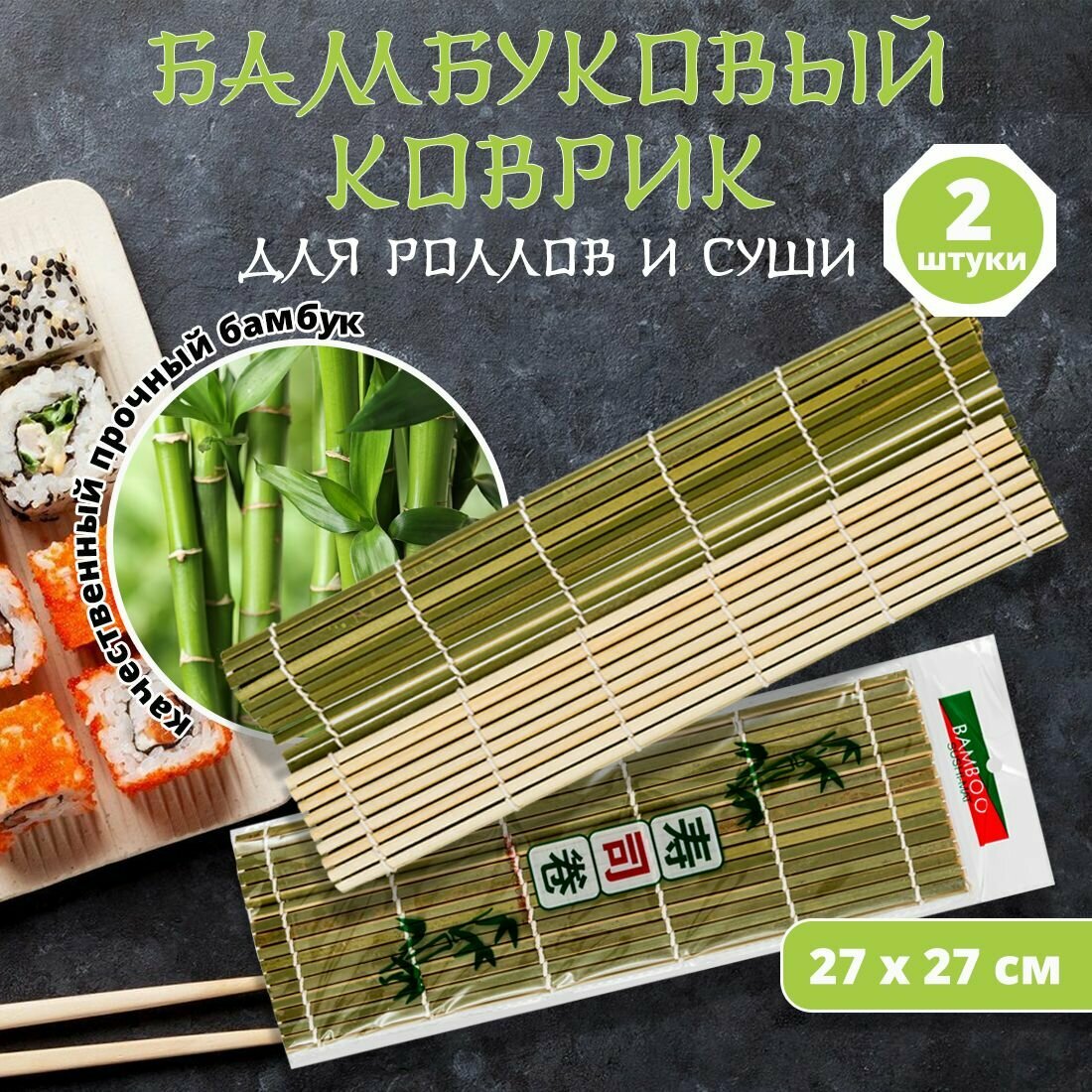 Купить Циновка для суши и роллов 27 см, 2 шт