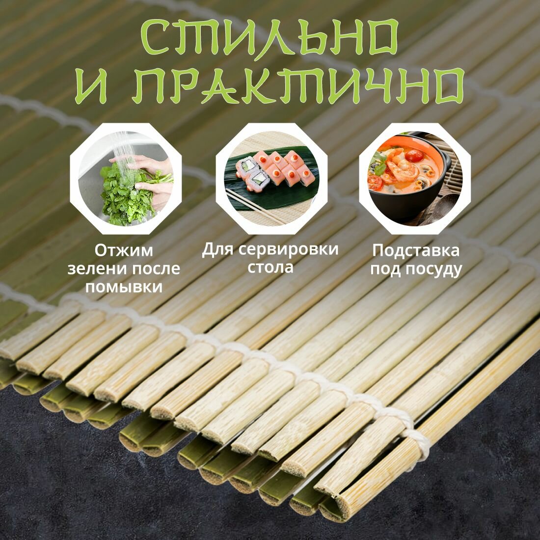Циновка для суши и роллов 27 см, 3 шт интересное: