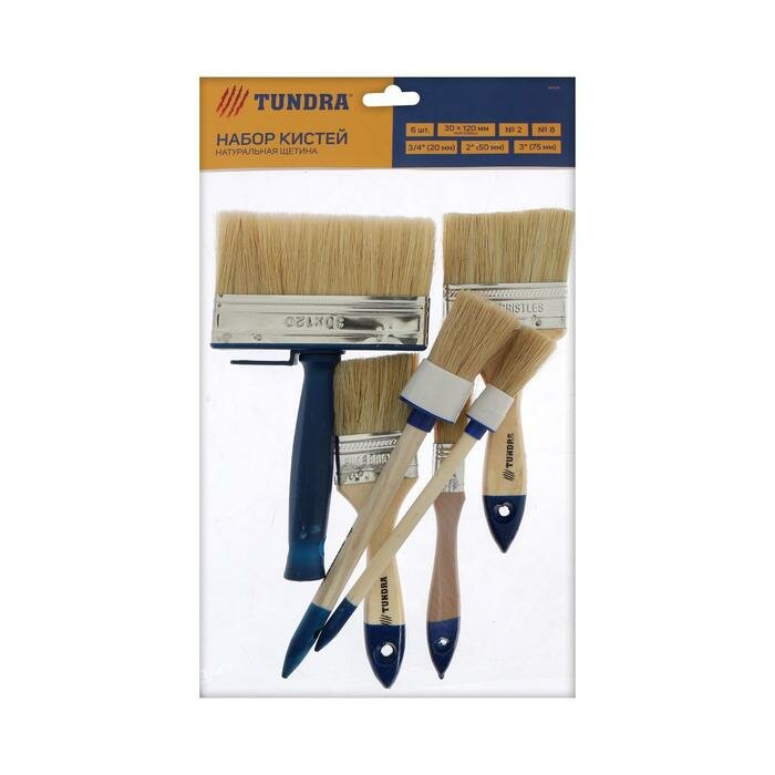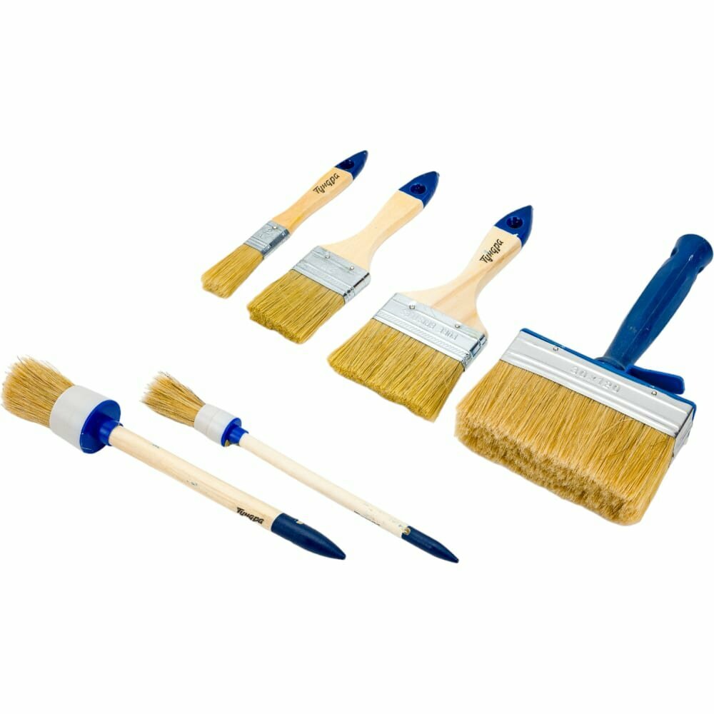 Набор кистей тундра, плоские 3/4", 2", 3", круглые №2, №8, макловица 30х120 мм, 6 шт.