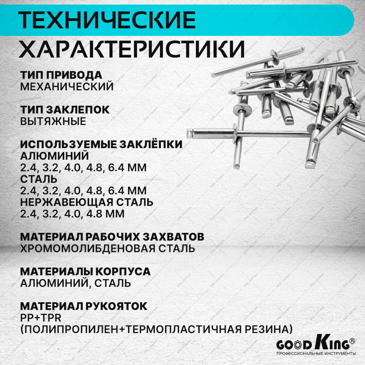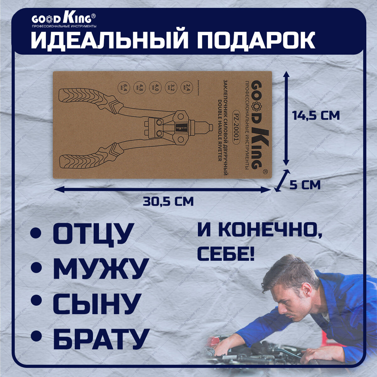 Заклёпочник GOODKING PZ-20001, двуручный для вытяжных заклёпок, 12 дюймов, усиленный интересное: