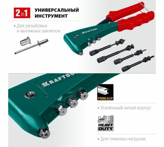 Комбинированный заклепочник KRAFTOOL Combo2-M6 в кейсе 31180 интересное: