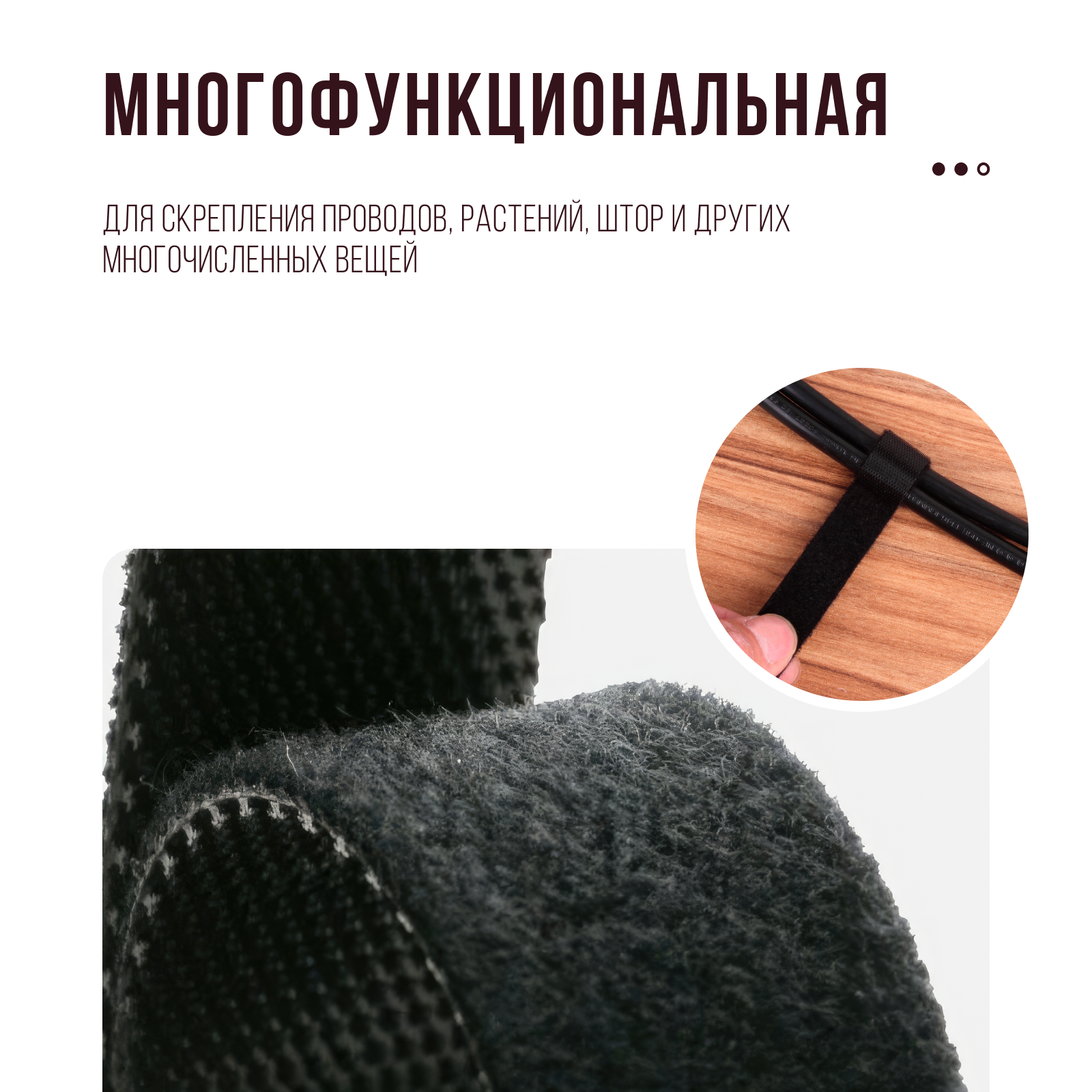 Лента липучка для проводов чёрная / Органайзер, стяжка, крючки, петли, хомут, скотч для кабеля многоразовая, отрывная