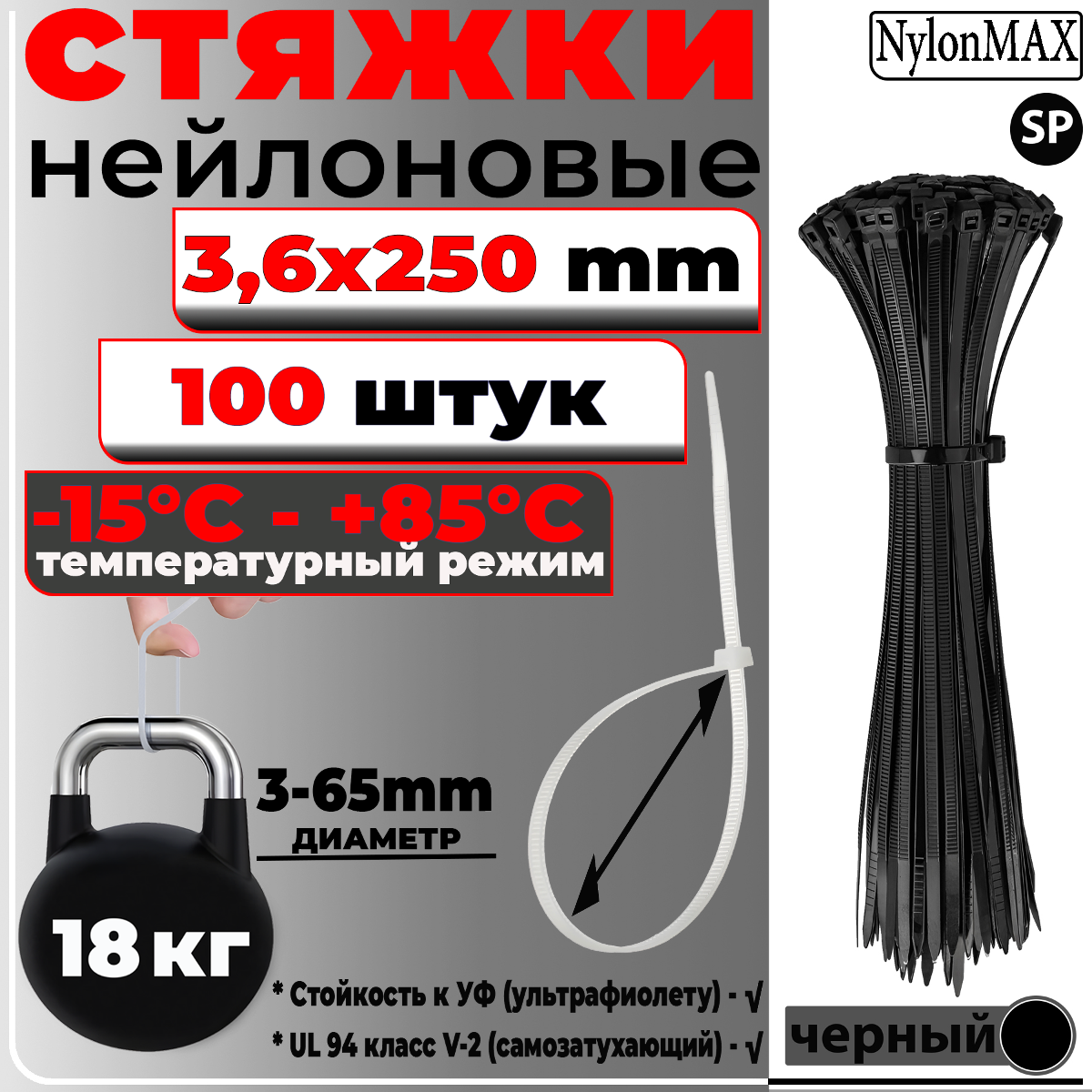 Купить Стяжка кабельная (хомут) нейлоновая NylonMAX, 4х250, черный, 100 шт.