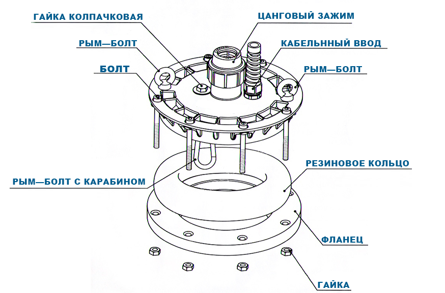 | Комплектация | кабельный ввод / карабины / крышка / резиновое кольцо / фланец |