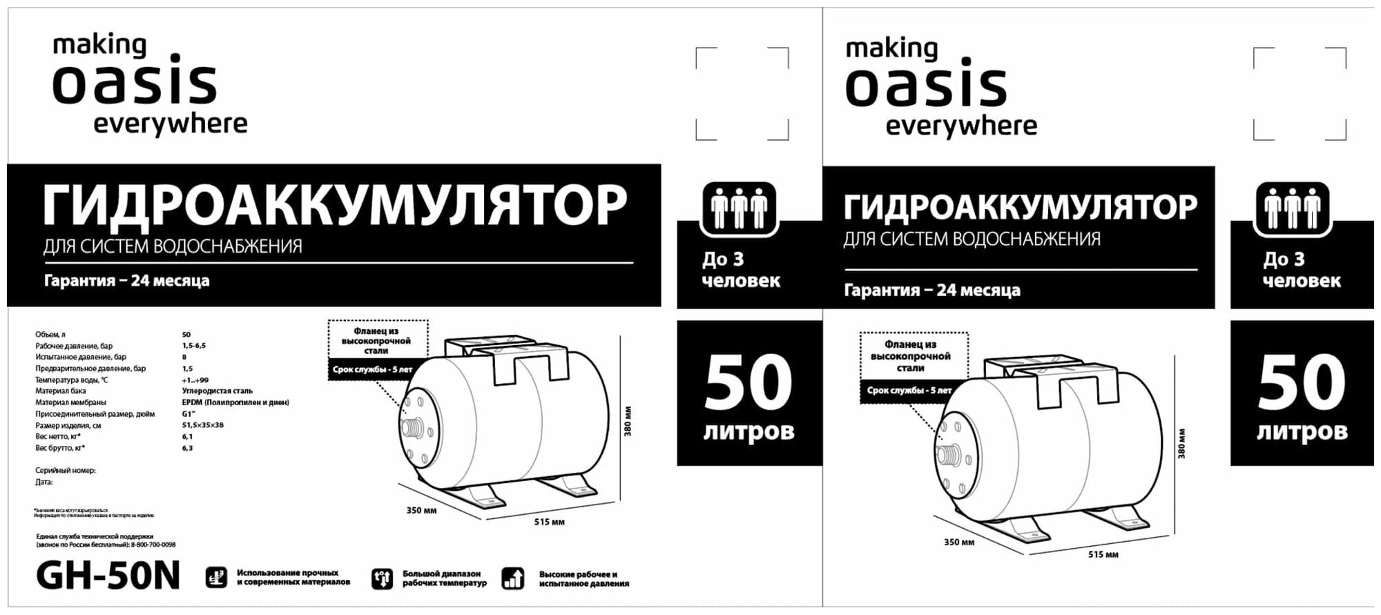 Гидроаккумулятор горизонтальный 50 л Oasis GH50N 1" зеленый интересное: