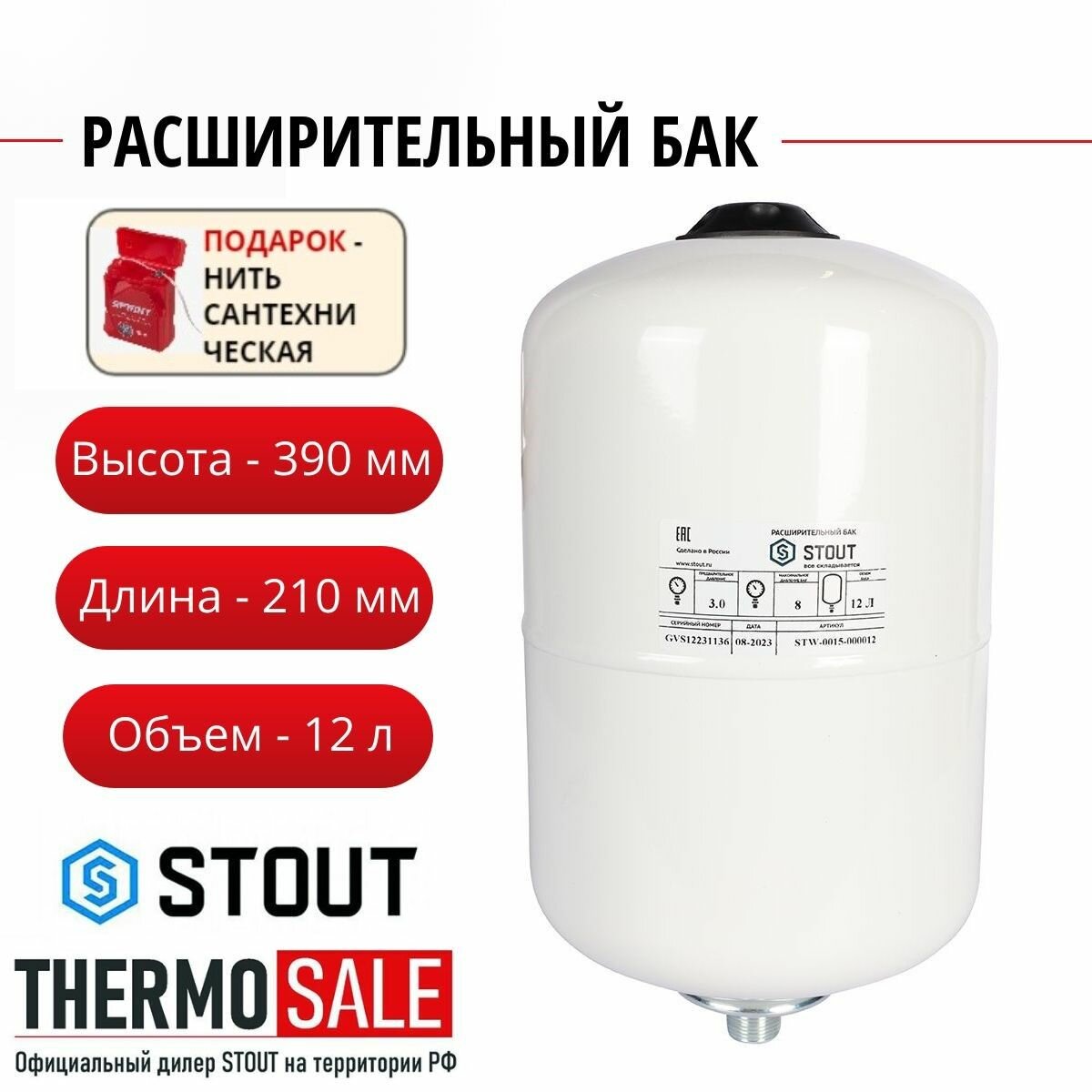 Расширительный бак, для ГВС 12 л. вертикальный (цвет белый) STOUT Нить сантехническая интересное: