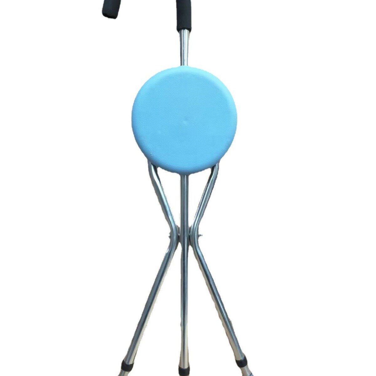 Трость-стул складной, регулировка по высоте, нагрузка до 200 кг, голубой, круглое сиденье