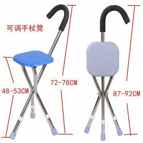 Трость-стул складной, регулировка по высоте, нагрузка до 200 кг, голубой, квадратное сиденье