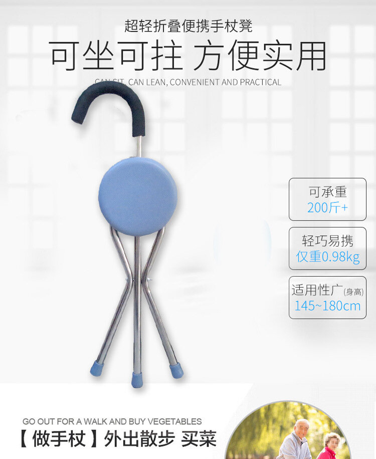 Трость-стул складной, регулировка по высоте, нагрузка до 200 кг, голубой, круглое сиденье