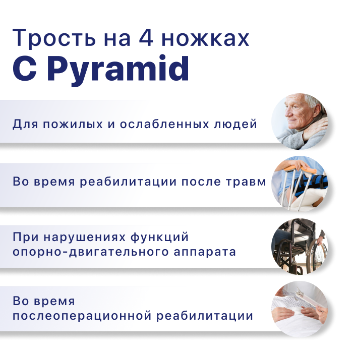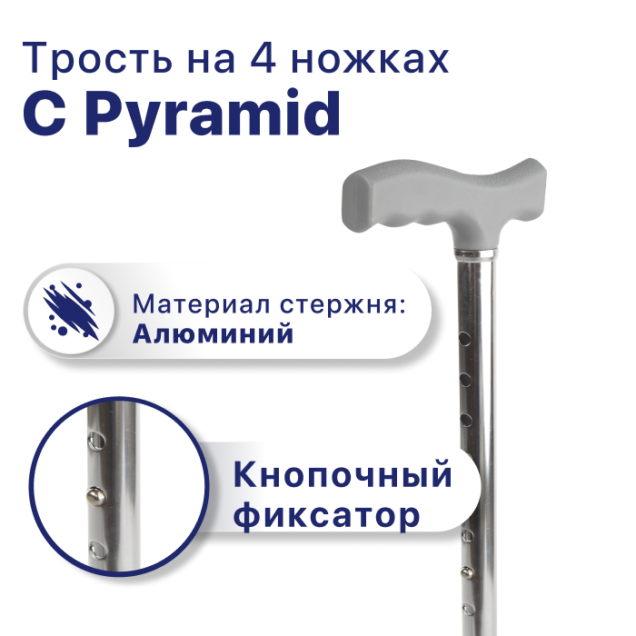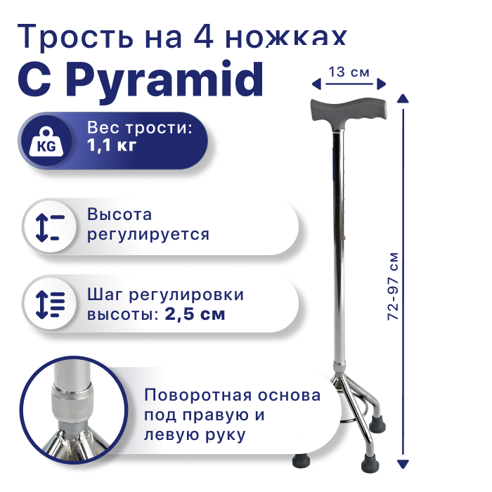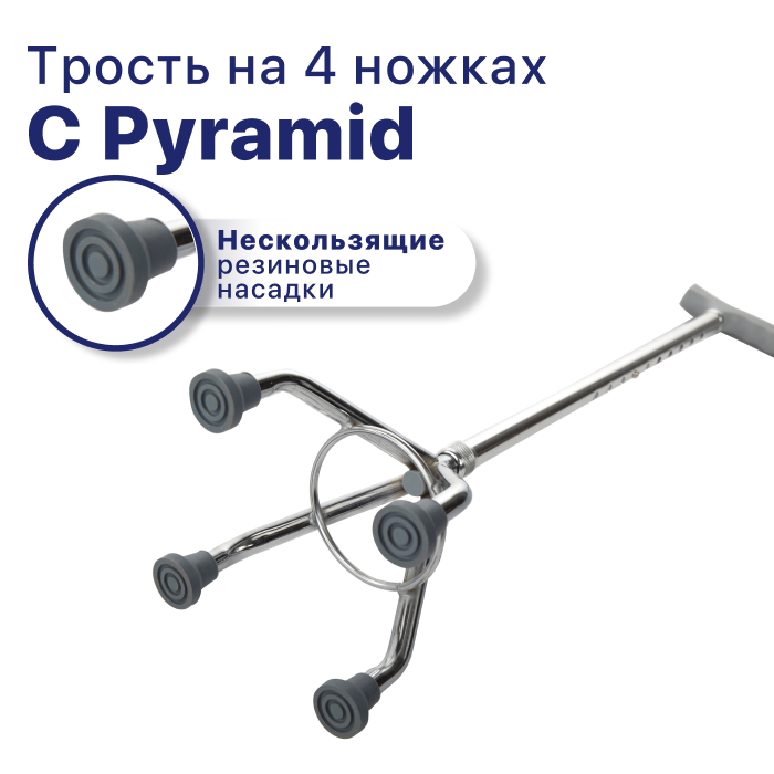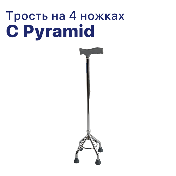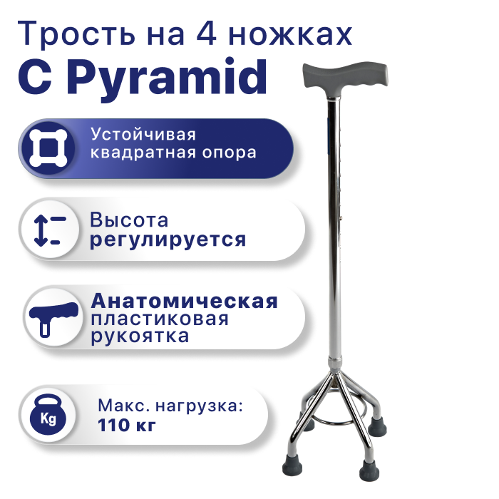 Трость 4-опорная с функцией по регулированию высоты, без устройства против скольжения C Pyramid, опорная для ходьбы, для взрослых, пожилых людей и инвалидов интересное: