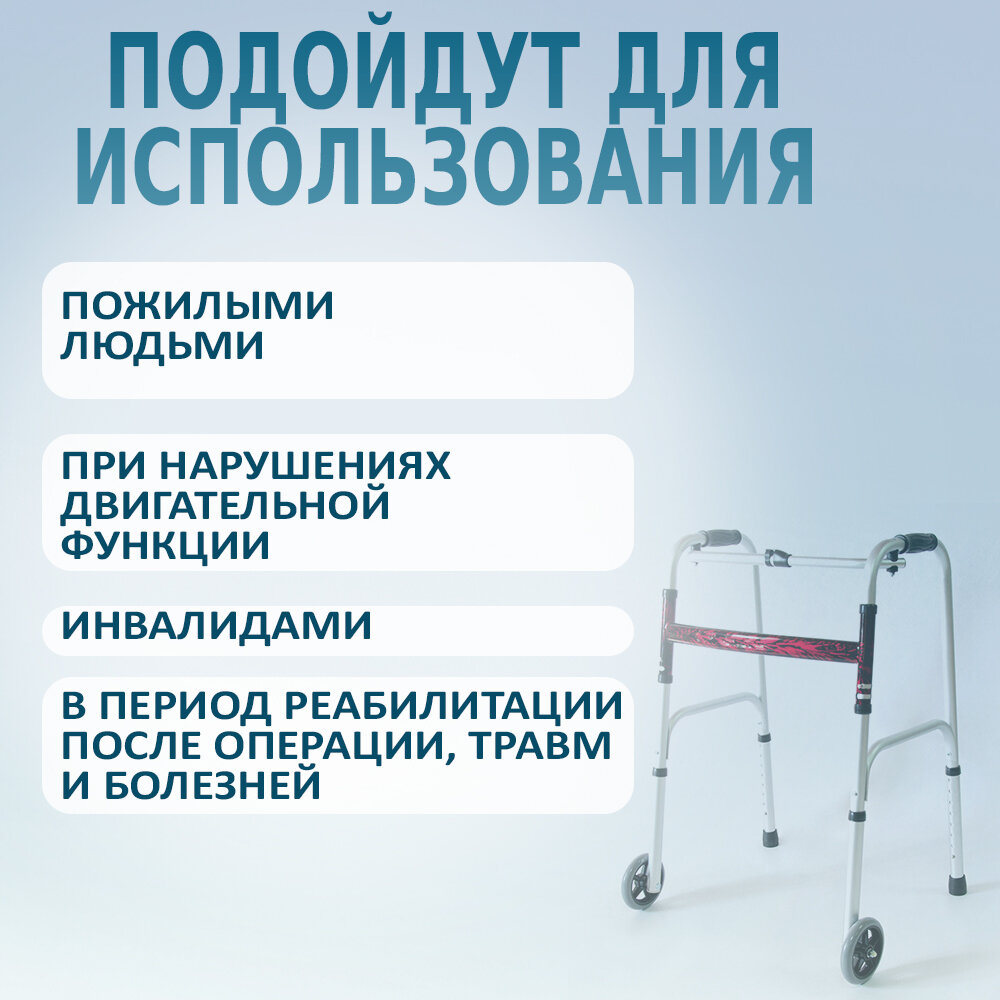 Усиленные шагающие ходунки-опоры на 2-х колесах для инвалидов и пожилых людей до 135кг интересное: