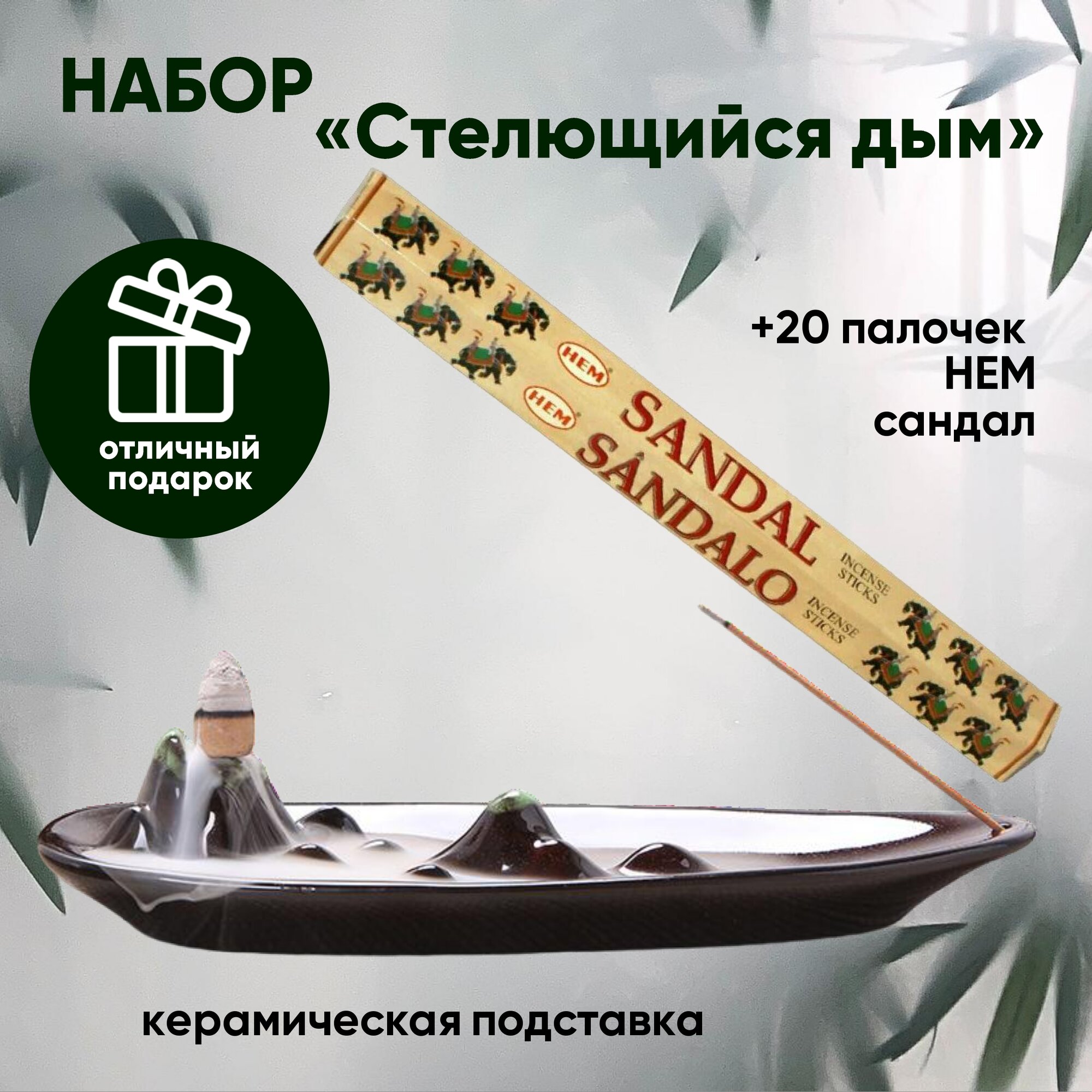 Набор благовоний стелющийся дым, подставка "Сад камней" и 20 аромапалочек HEM интересное: