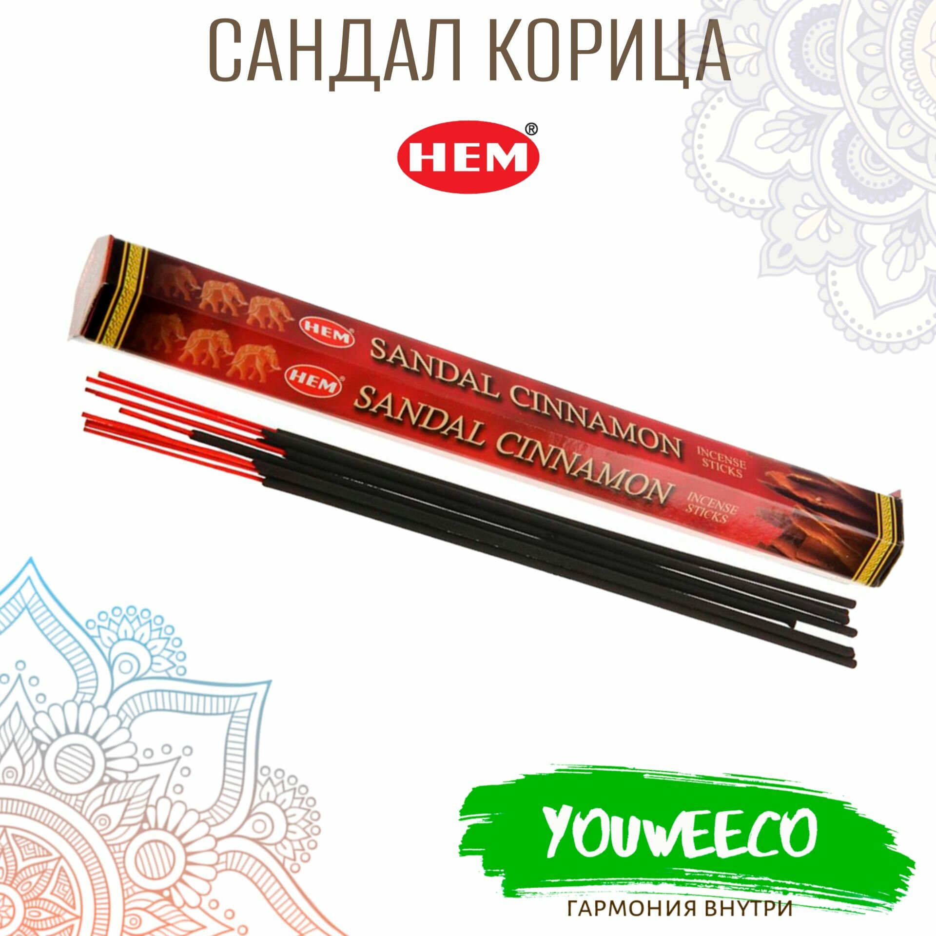Купить Благовония HEM Sandal Cinnamon Сандал - корица, 20 штук