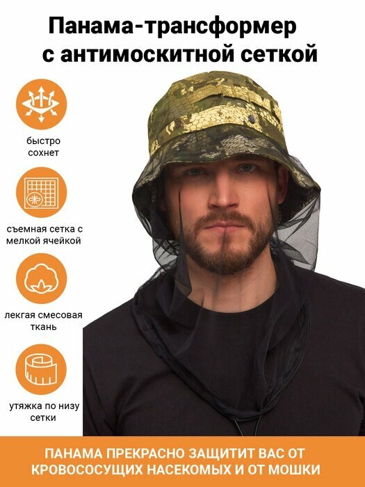 Панама с антимоскитной сеткой KATRAN кайман (Смесовая, хаки), Темный хаки, Размер: 58