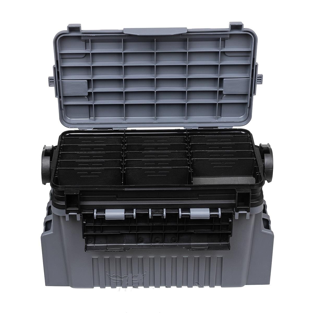 | Особенности | водонепроницаемость / держатель для спиннинга / жесткая конструкция / крышка-сиденье / лоток для снастей / настраиваемые ячейки / плечевой ремень / усиленное дно |