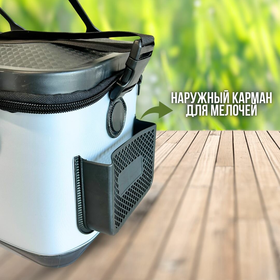 Кан рыболовный / Сумка для рыбы / Ведро для рыбалки 37 см черно-серый интересное: