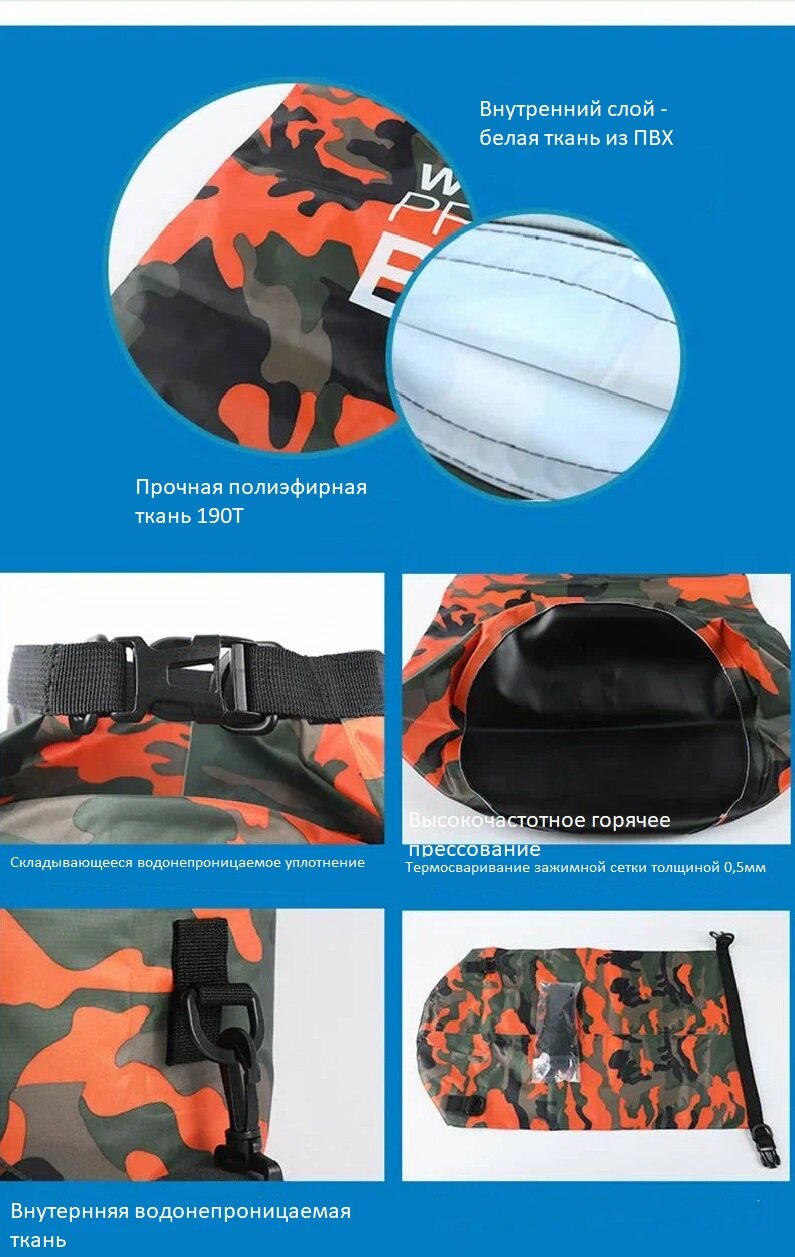 Гермомешок 20 литров с двумя ремнями камуфляж зелёный интересное: