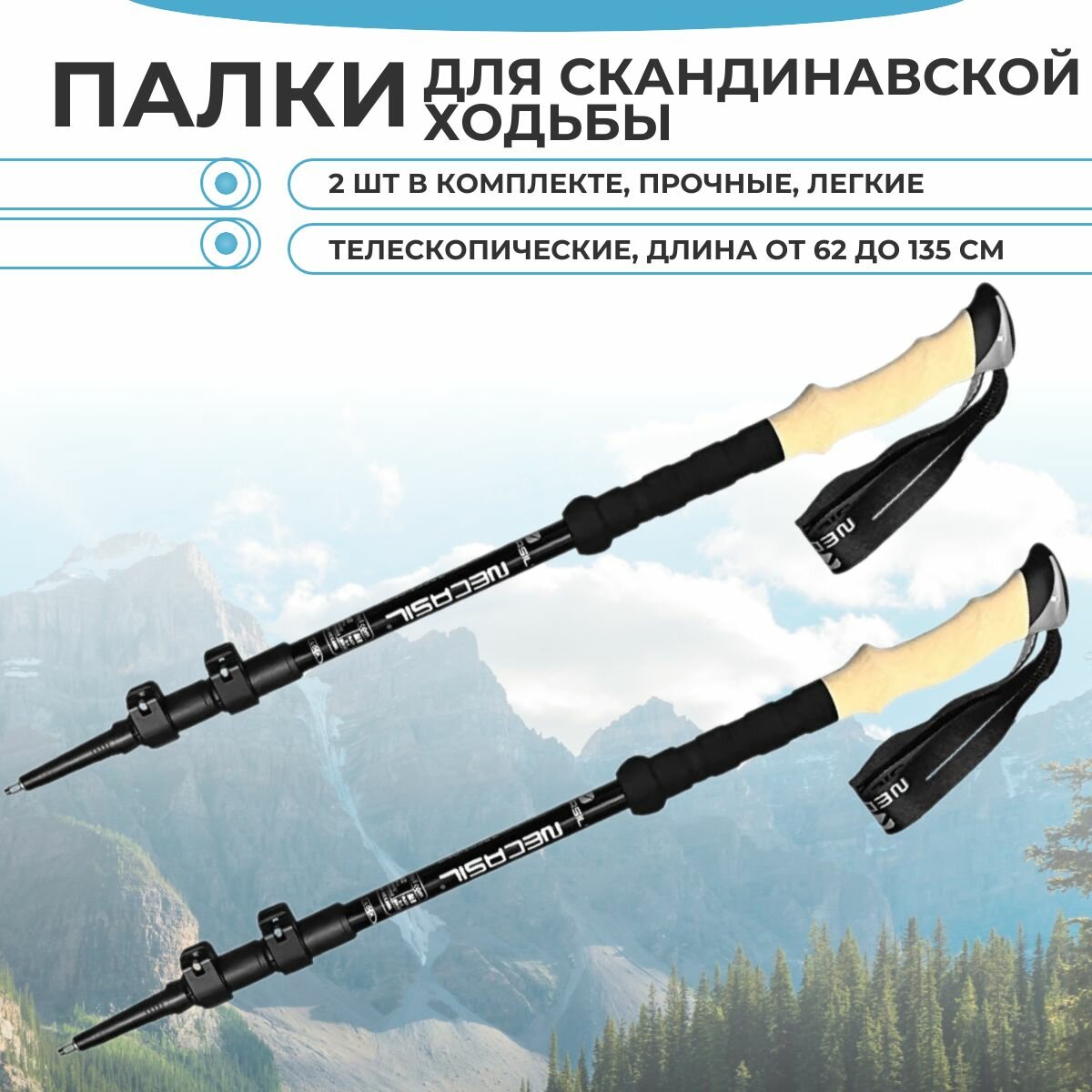 Алюминиевые противоударные трости для походов и прогулок на открытом воздухе 2 шт / Палки для скандинавской ходьбы 62-135 см интересное: