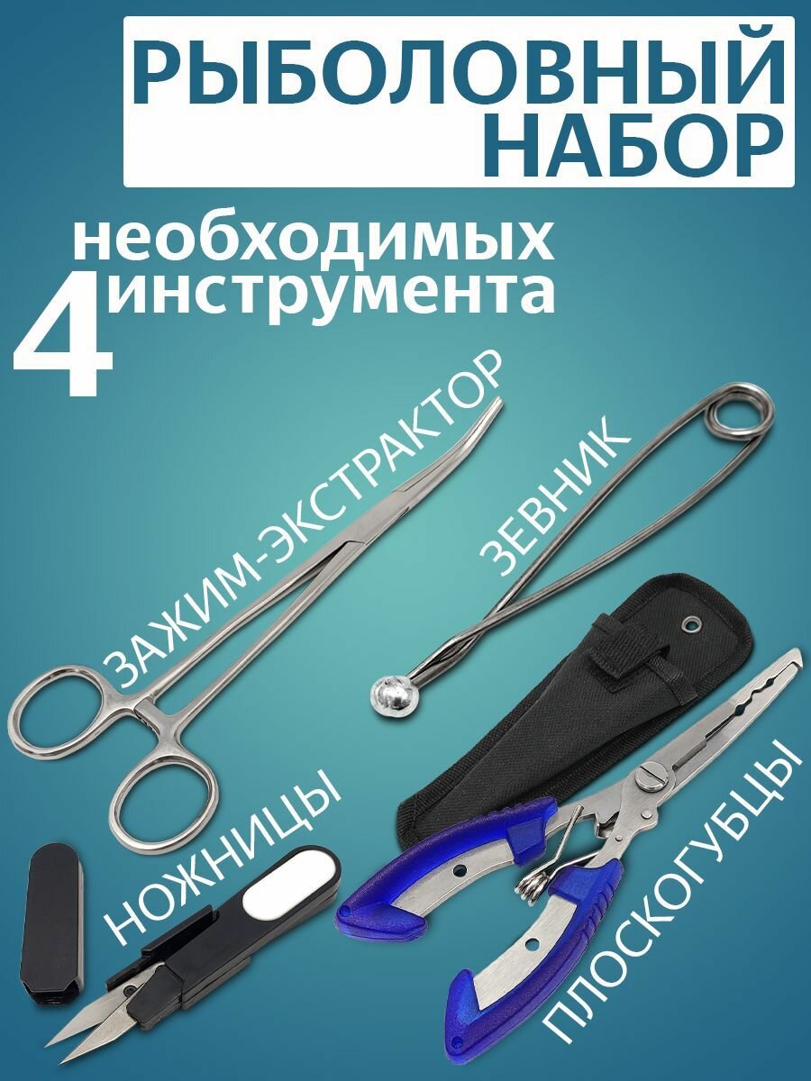 Купить Комплект рыболовный (Зажим экстрактор, плоскогубцы, зевник, ножницы)