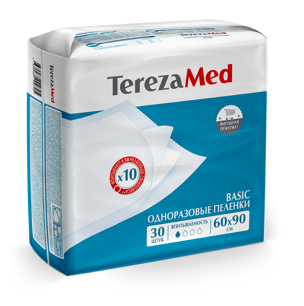 TerezaMed Basic / ТерезаМед Бейсик - пеленки одноразовые, 60x90 см, 30 шт.