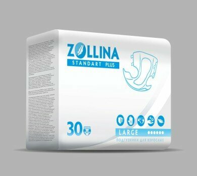 "Золлина Стандарт Плюс L" - подгузники для взрослых с тяжелой степенью недержания, до 150 см обхват талии,6 капель. интересное: