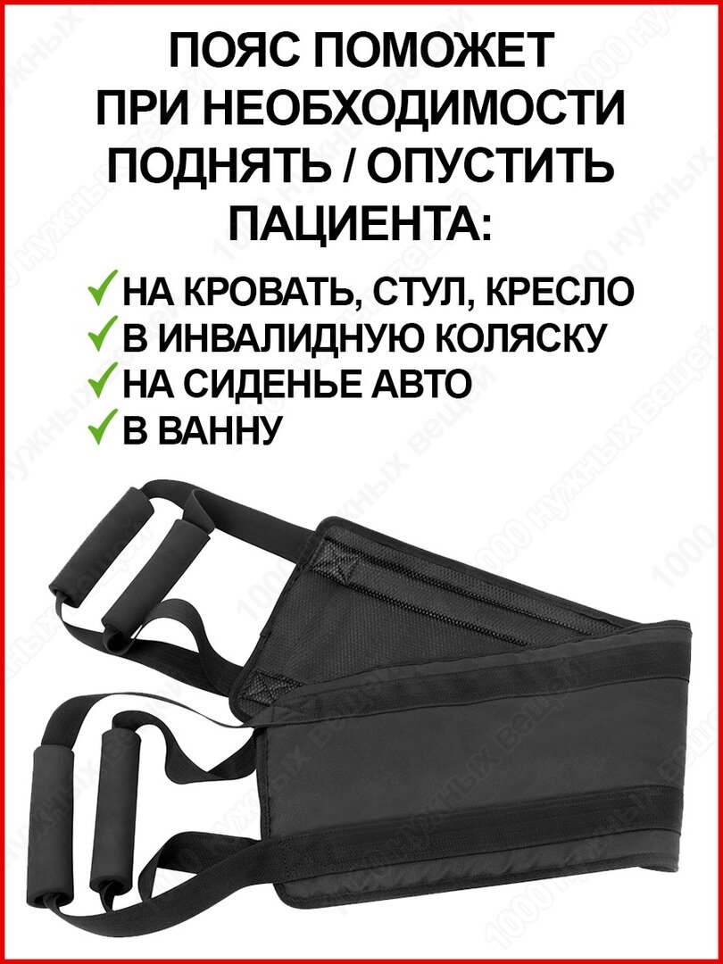 | Дополнительная информация | Поддерживающий пояс - это специальное устройство, которое облегчает поддержку, подъем и передвижение людей с ограниченными физическими возможностями. Одобрен и рекомендован врачами травматологами и нейрохирургами. |