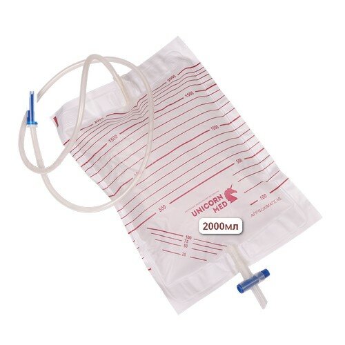 Мочеприемник 2000 мл с крестовым краном для слива UNICORN MED, 10 штук