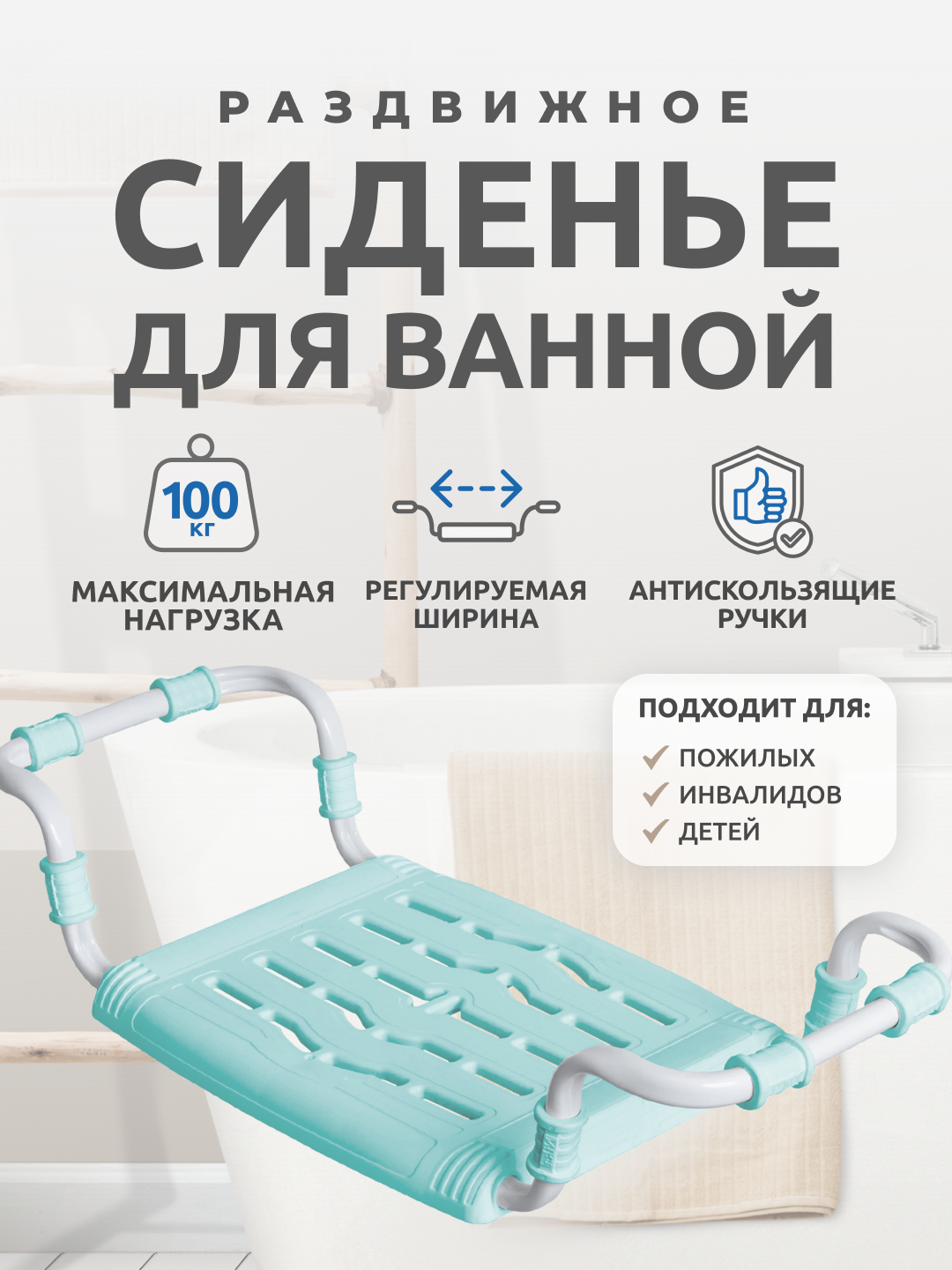 Купить Сиденье в ванну раздвиж. пластик "Ника" (метал. 63-70 см) бирюзовый СВ5БР
