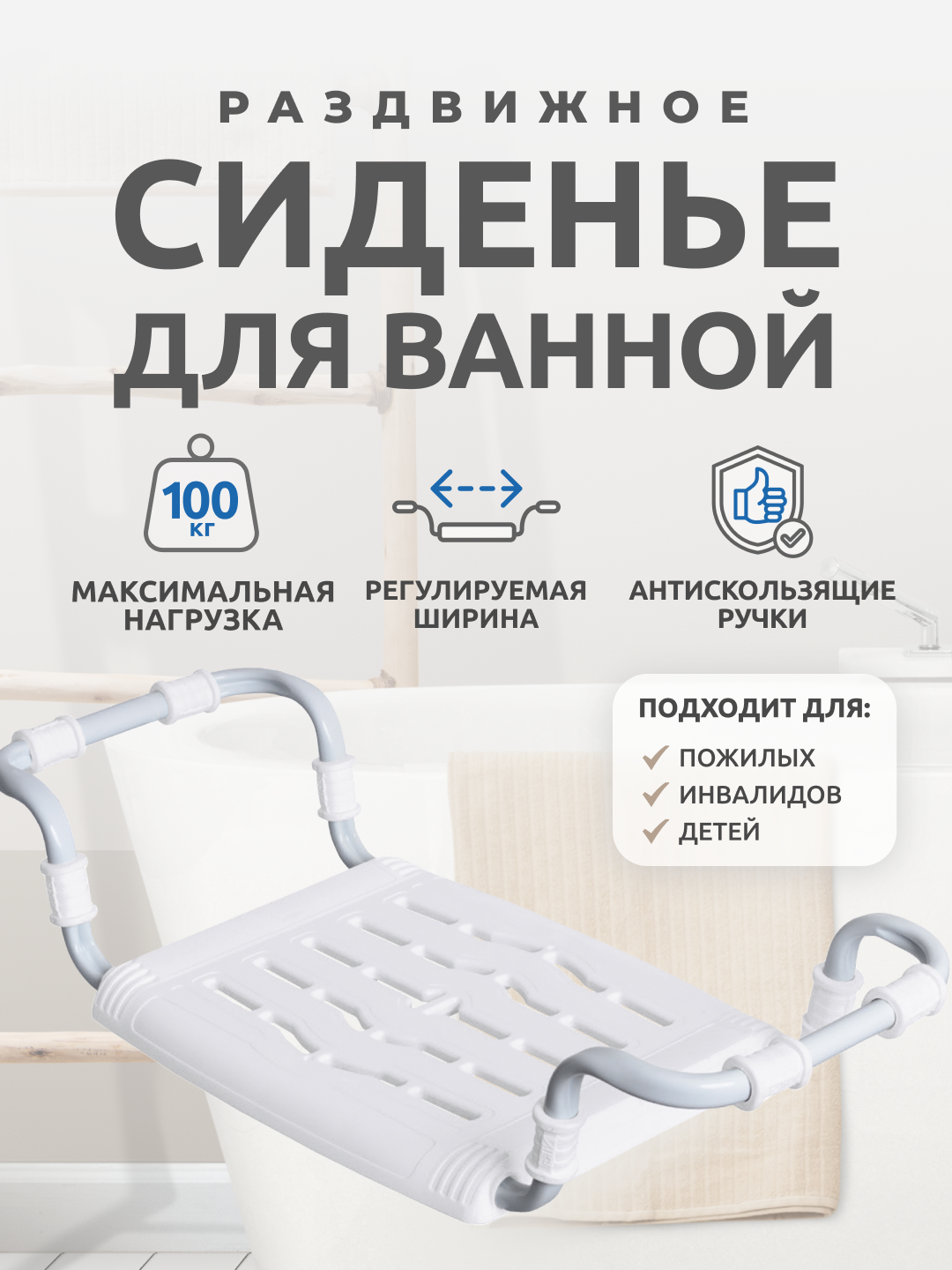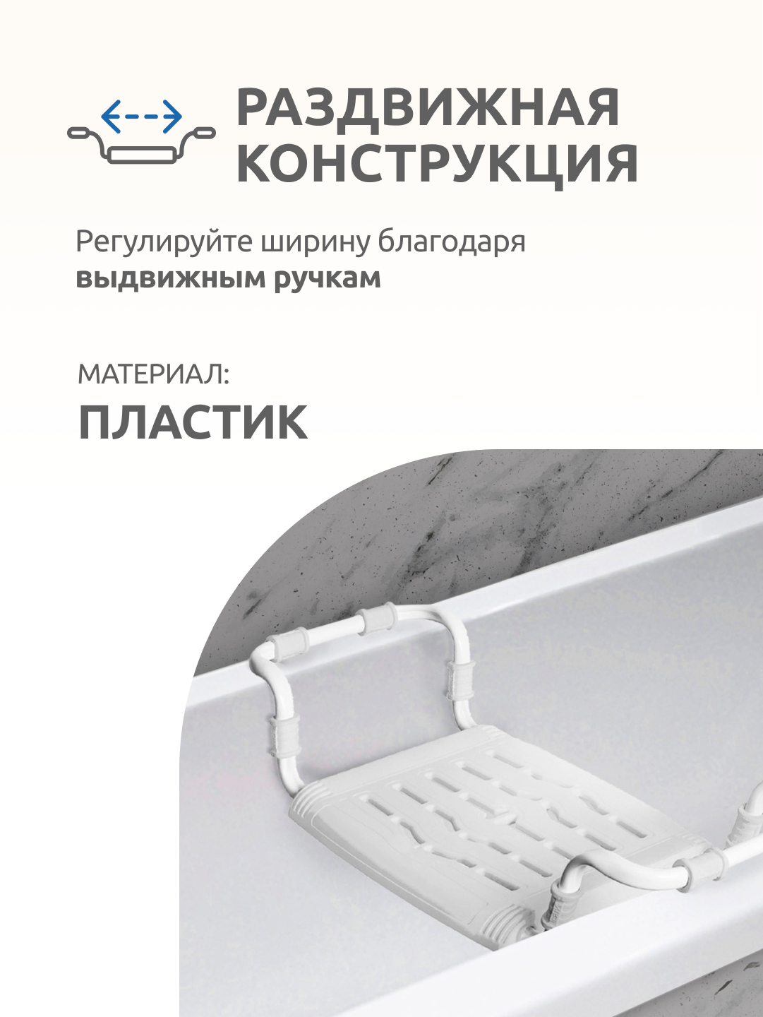 Сиденье в ванну Ника пластмассовое, раздвижное (СВ5/Б белый)