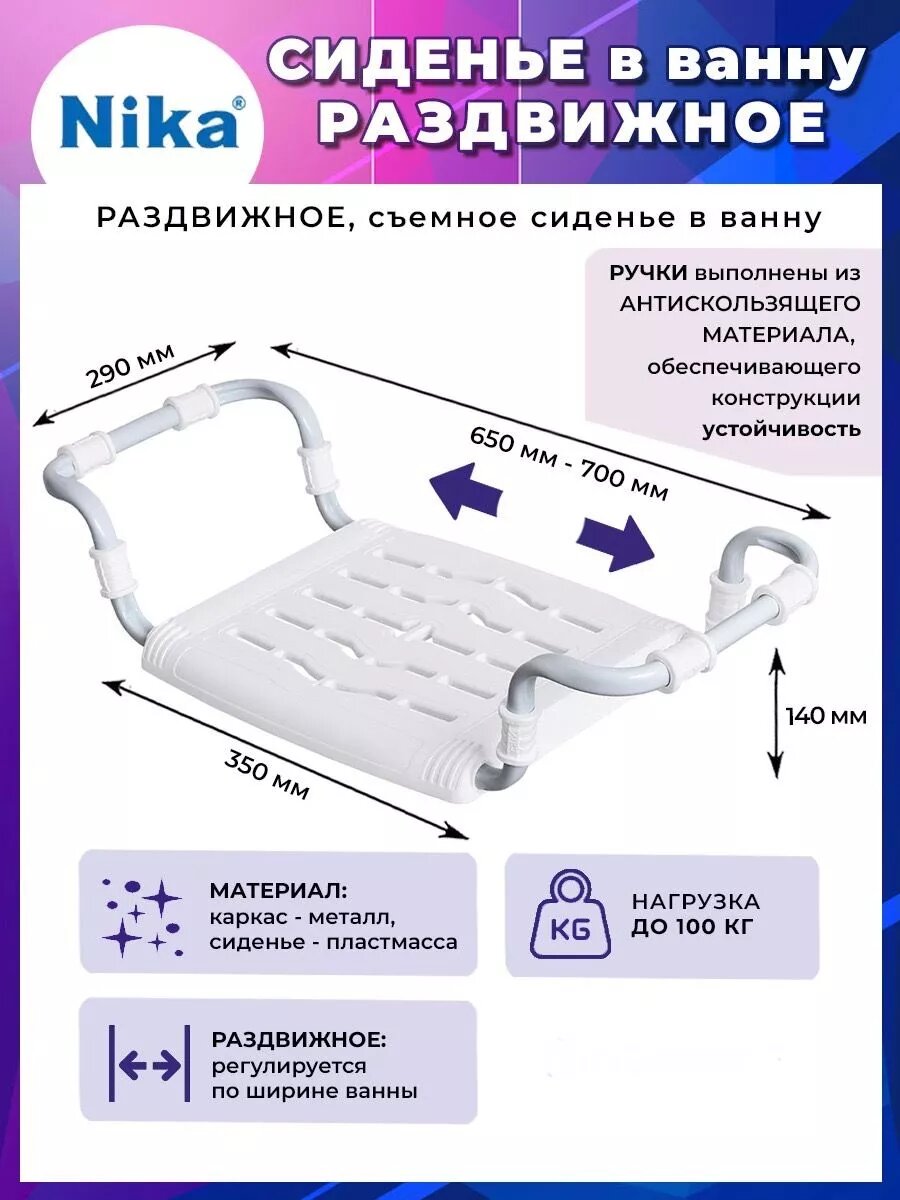 СохранитьСиденье в ванну Nika пластмассовое раздвижное, белый СВ5/Б интересное: