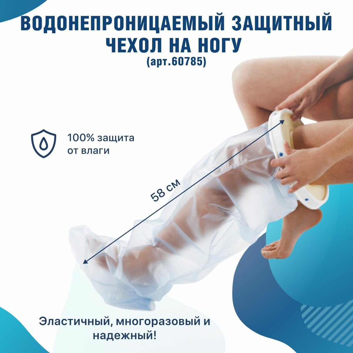 Водонепроницаемый защитный чехол на гипс на ногу до колена 58 см (арт.60785/R) для взрослых и подростков интересное: