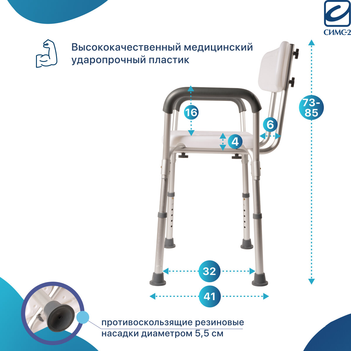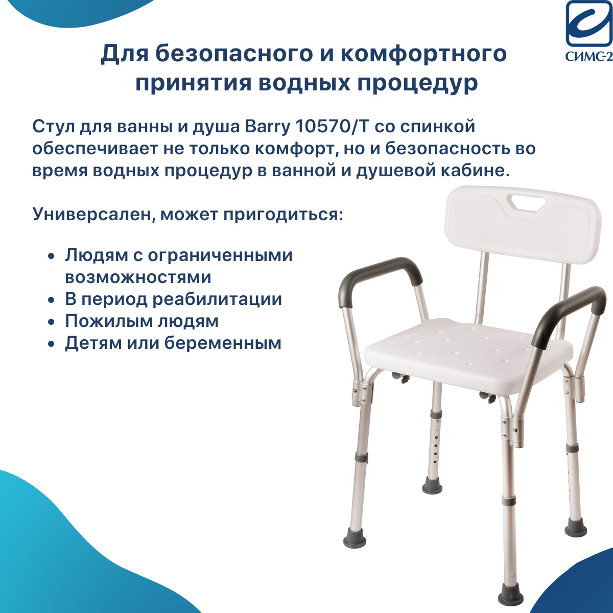 Стул для ванны и душа 10566 для пожилых ослабленных людей и лиц с ограниченными возможностями