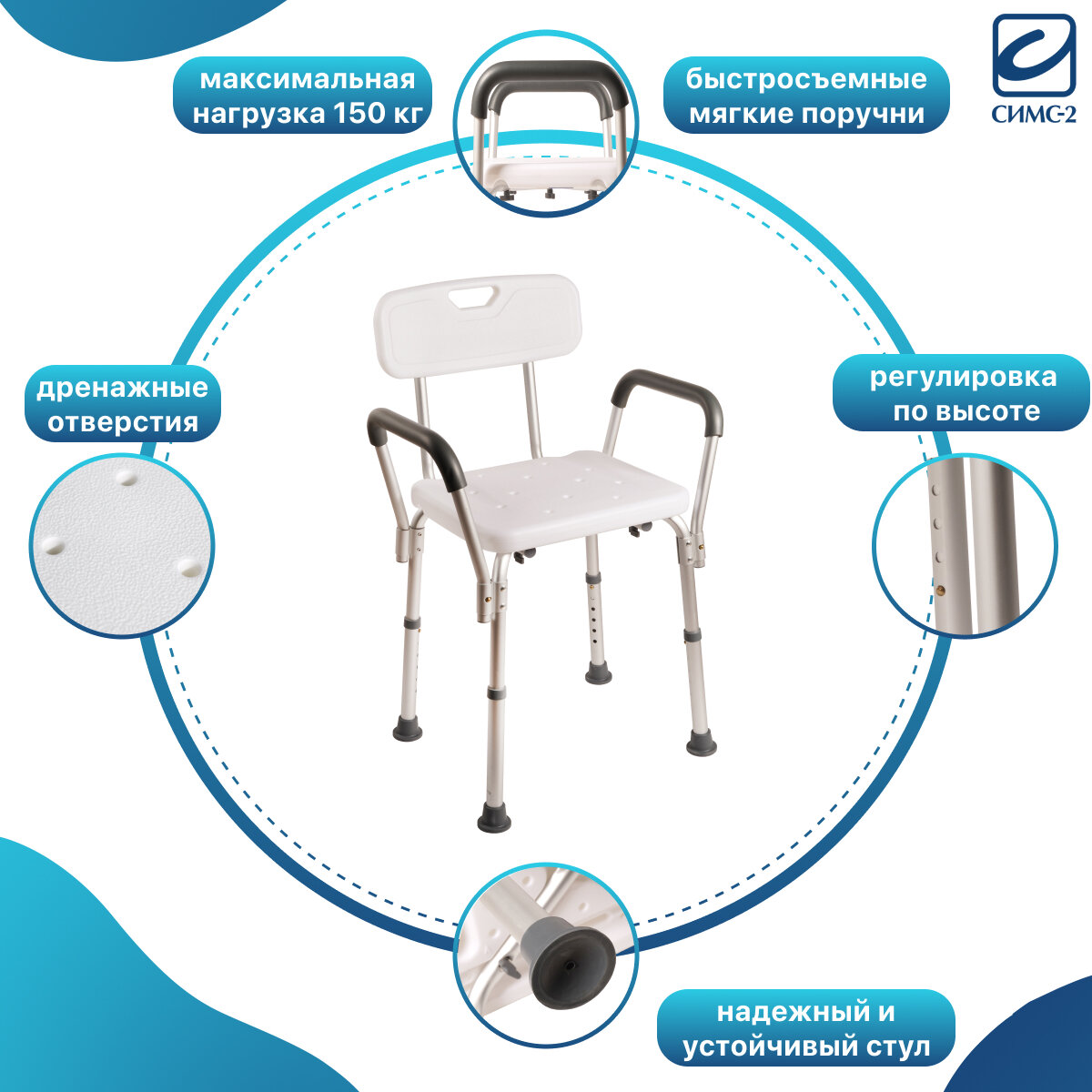 Купить Стул с поручнями и спинкой для пожилых для ванной и душа 10570/T