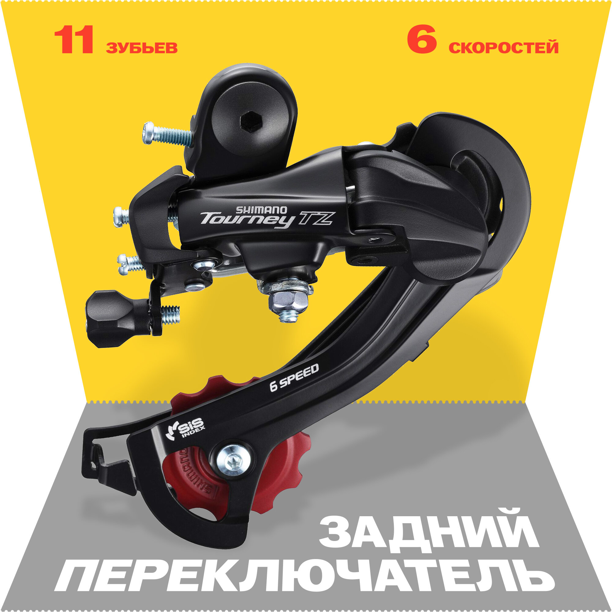 Переключатель скоростей задний, Shimano RD-TZ500, серия Tourney TZ, 6 скоростей, крепление на петух (болт), черный интересное: