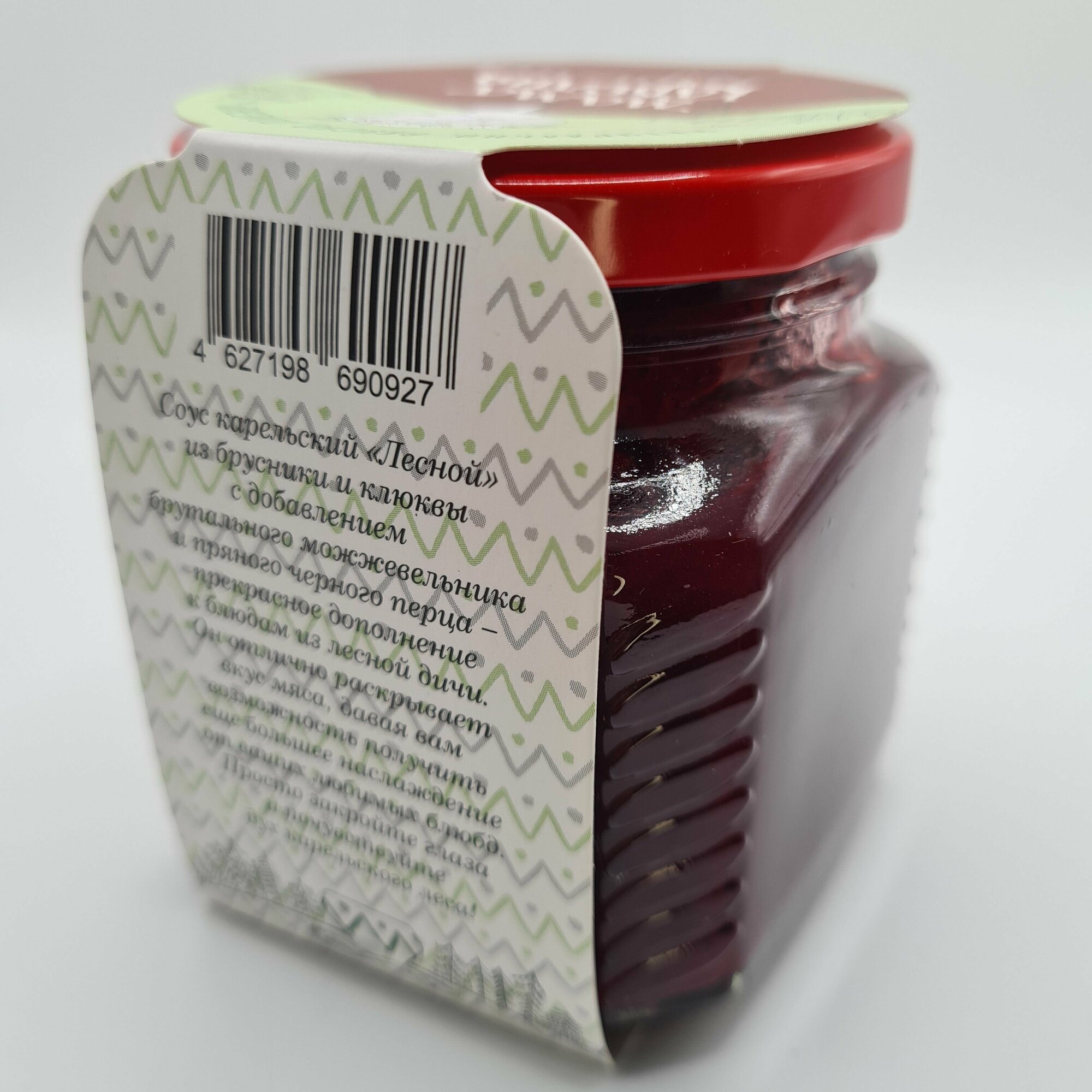 | Состав | Брусника, клюква, сахар, пектин, перец черный, можжевельник, регулятор кислотности лимонная кислота. |