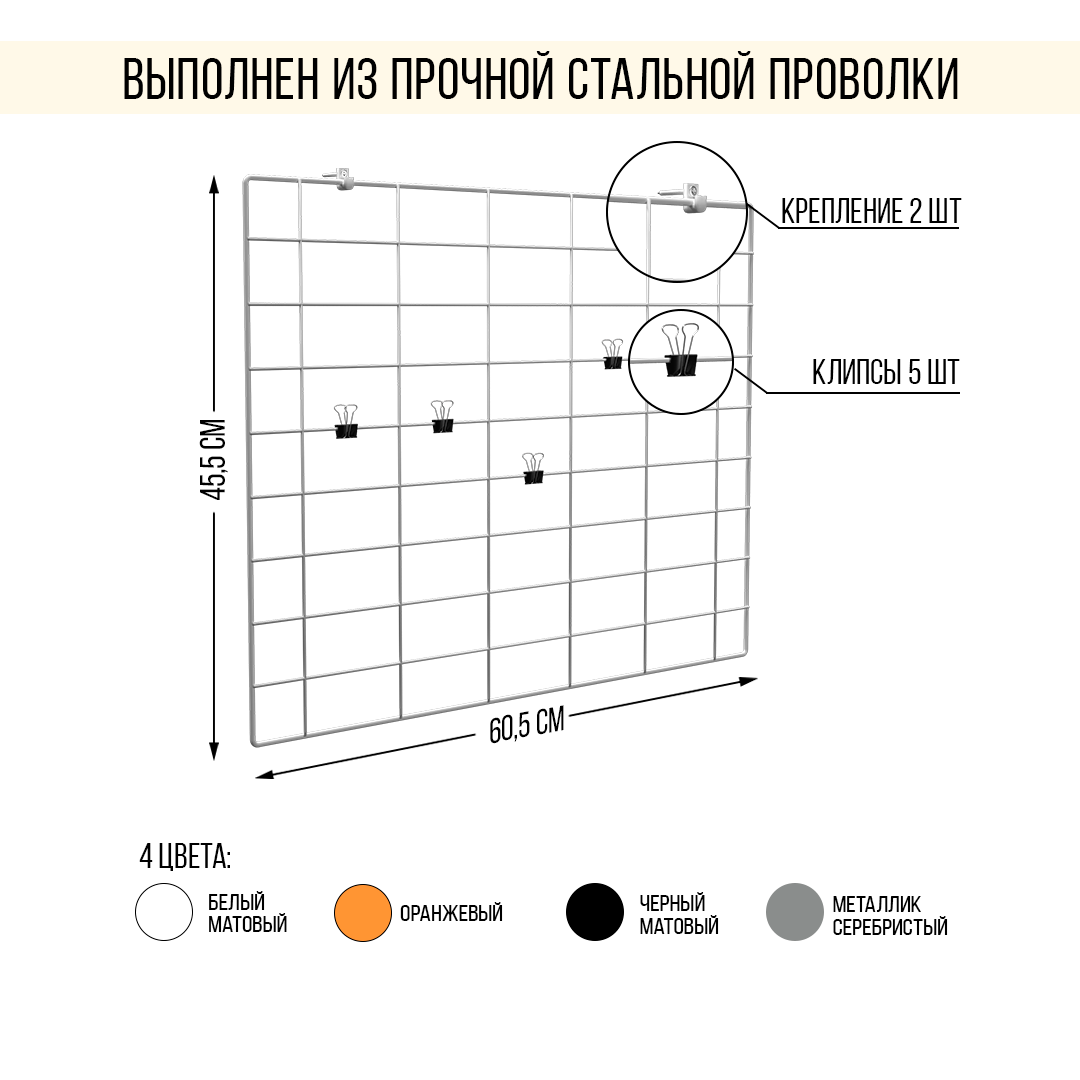 Настенный органайзер для канцелярии "Мудборд" 60,5 х 45,5 Белый муар интересное: