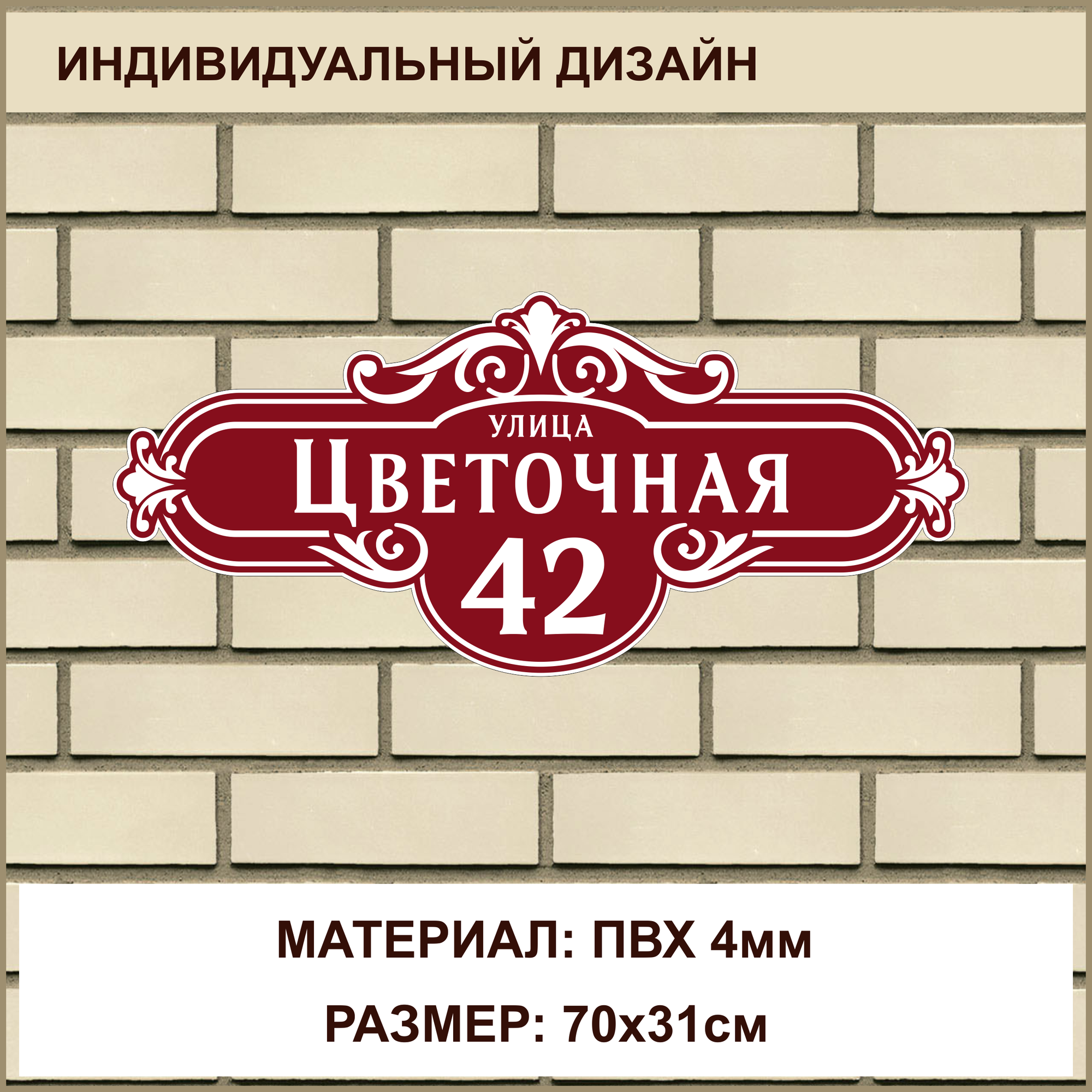 Адресная табличка на дом из ПВХ толщиной 4 мм / 70x31см / бордовый интересное: