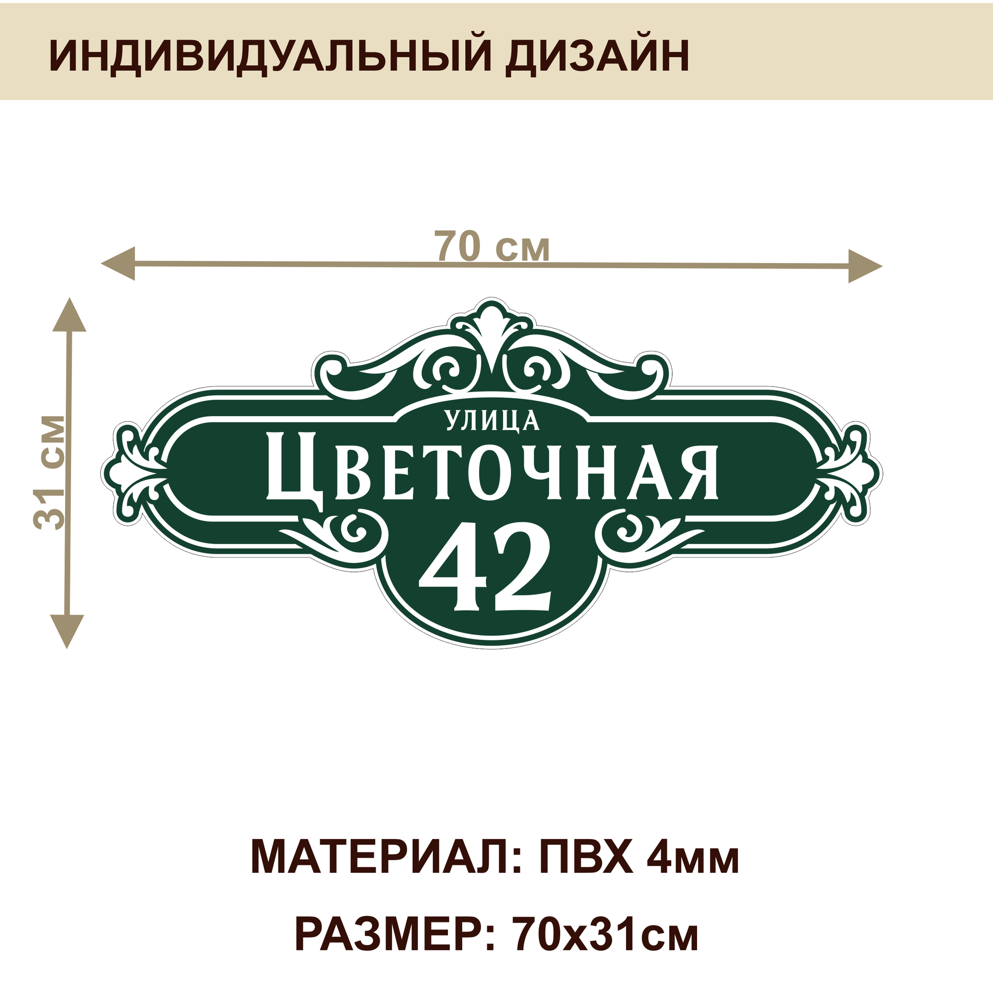 Адресная табличка на дом из ПВХ толщиной 4 мм / 70x31см / зеленый интересное: