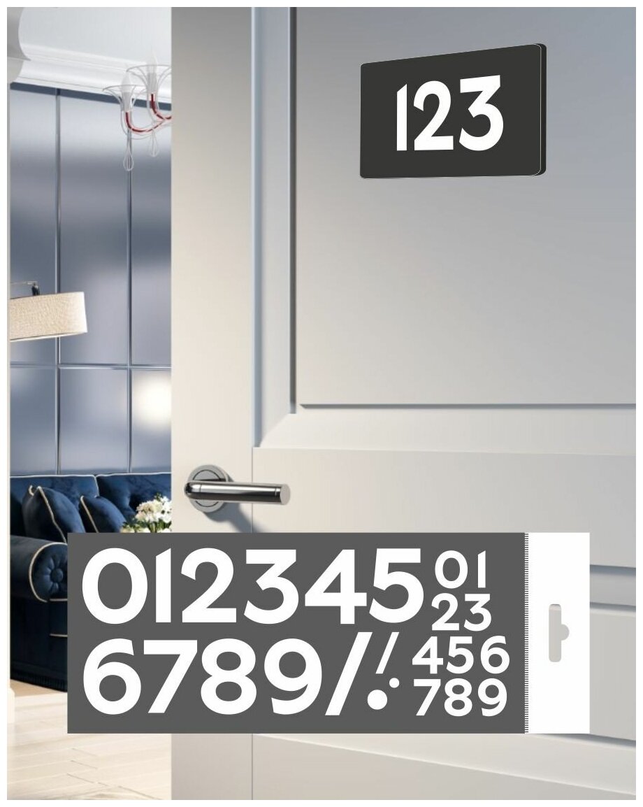 Стильный самосборный номер на квартиру с Вашими цифрами на дверь , Light 120х60 мм, Акрил, В подарок стильный номер на почтовый ящик! LightWhite интересное: