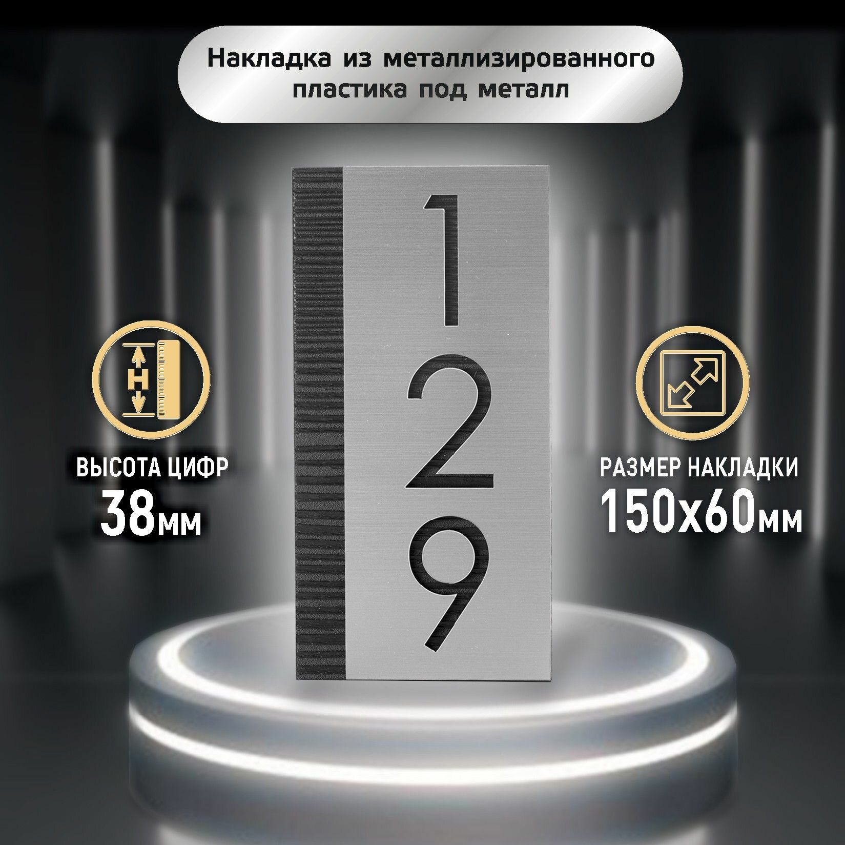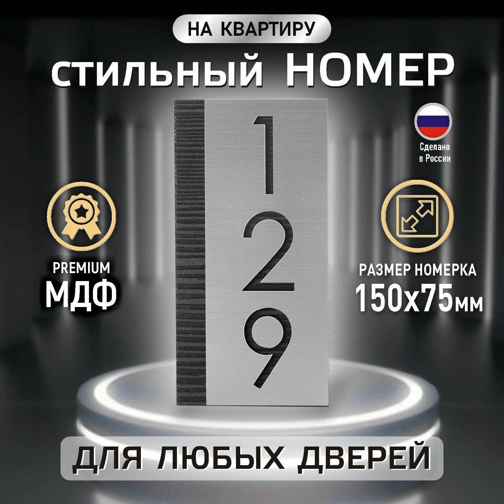 Стильный номерок на дверь с Вашими цифрами, 150х75 мм, МДФ и металлизированный пластик, вертикальный Dark интересное: