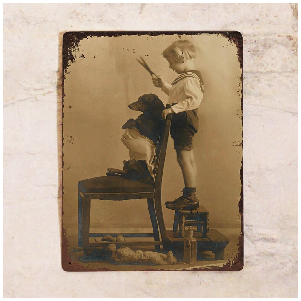 Жестяная табличка для декора стен Такса в барбершопе, металл, 20х30 см интересное: