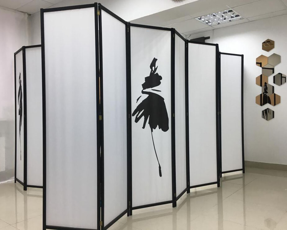 Ширма Фэшн - 6 секций. Лёгкая стильная складная ширма в чёрном каркасе от бренда "ширмы. РФ". Высота 180см
