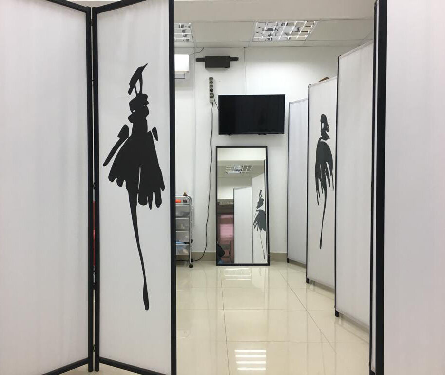 Ширма Фэшн - 6 секций. Лёгкая стильная складная ширма в чёрном каркасе от бренда "ширмы. РФ". Высота 180см