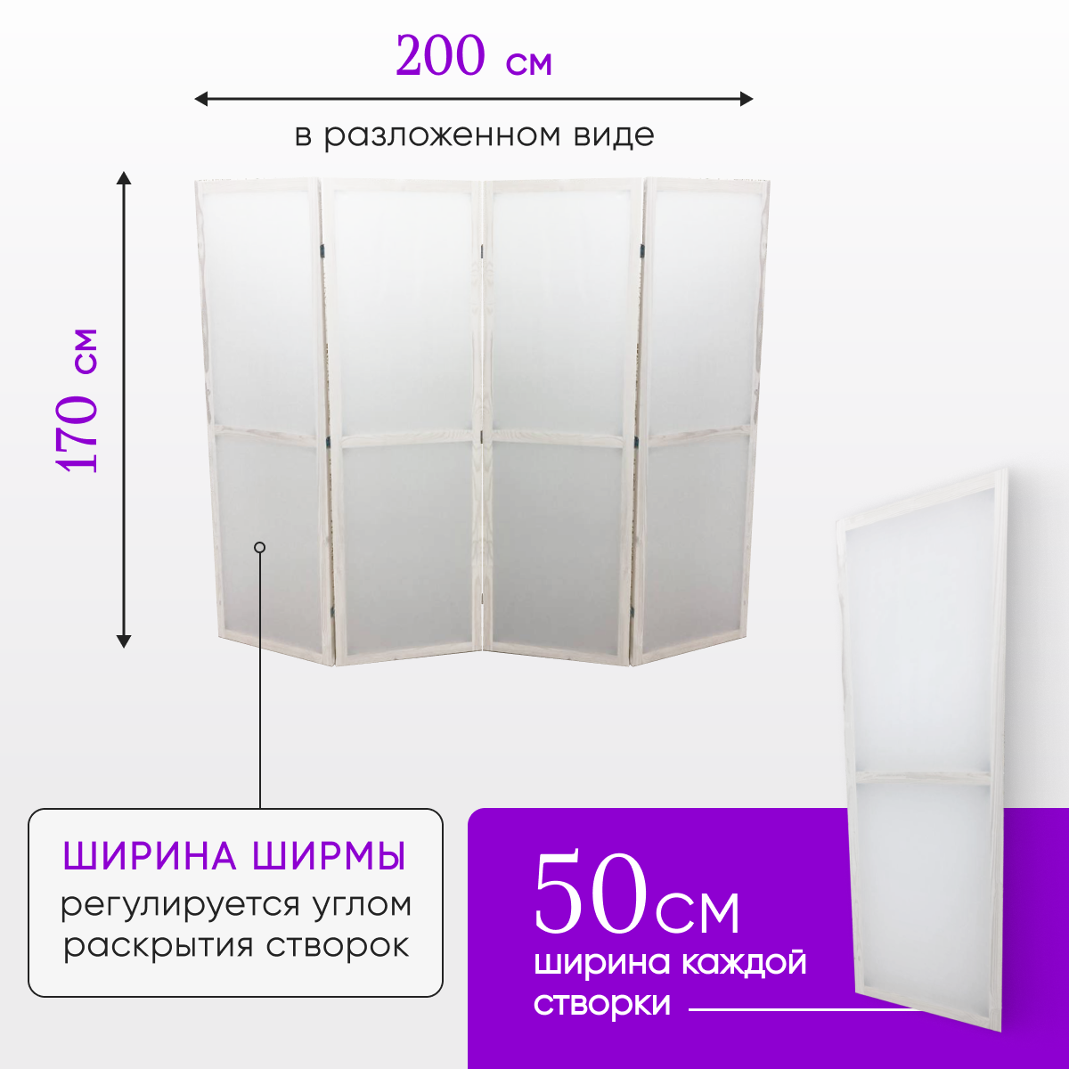 Ширма перегородка складная 4 створки Фиолетовая